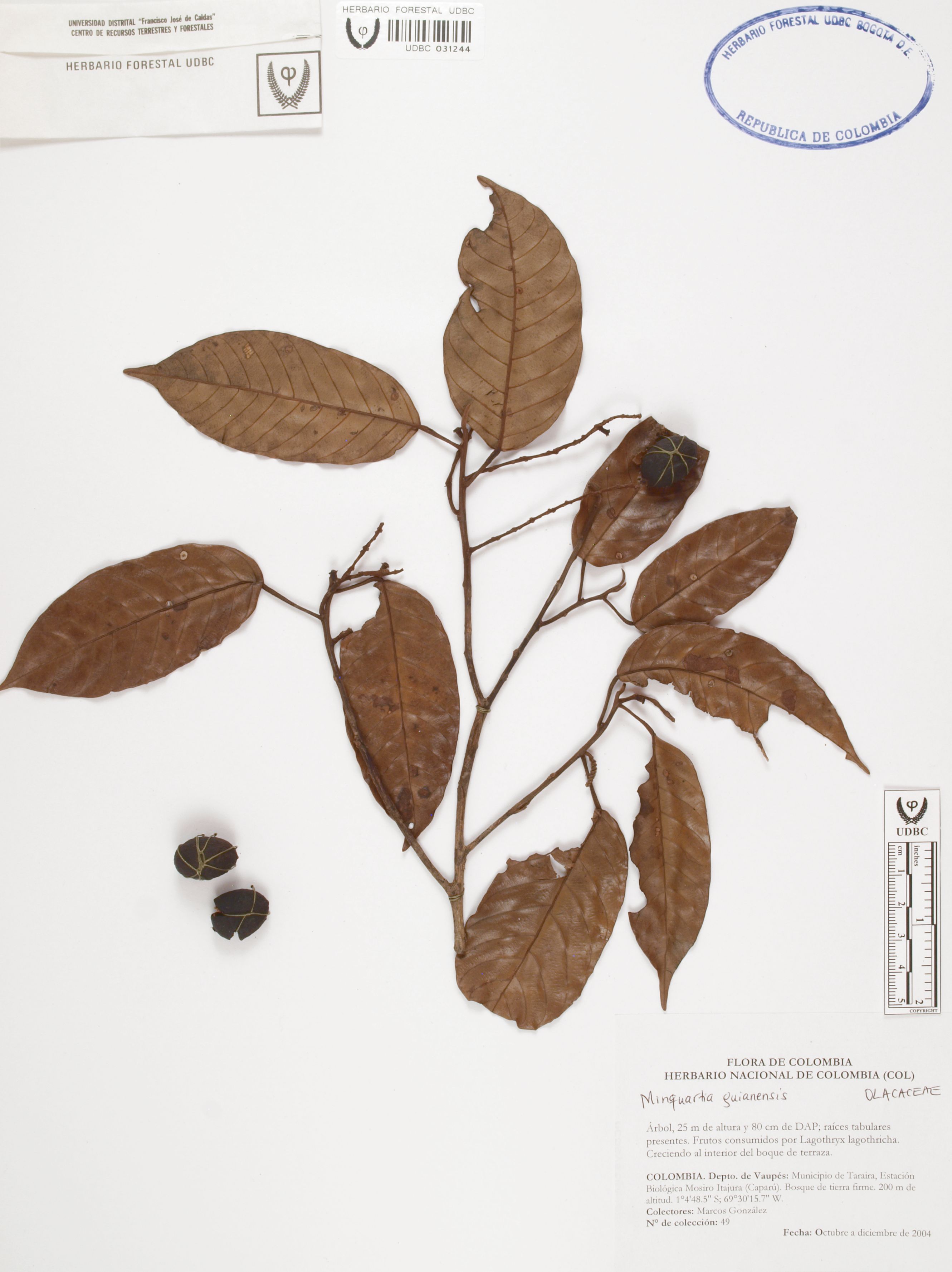 Fotografía del ejemplar González, M. 49, determinado como Minquartia guianensis