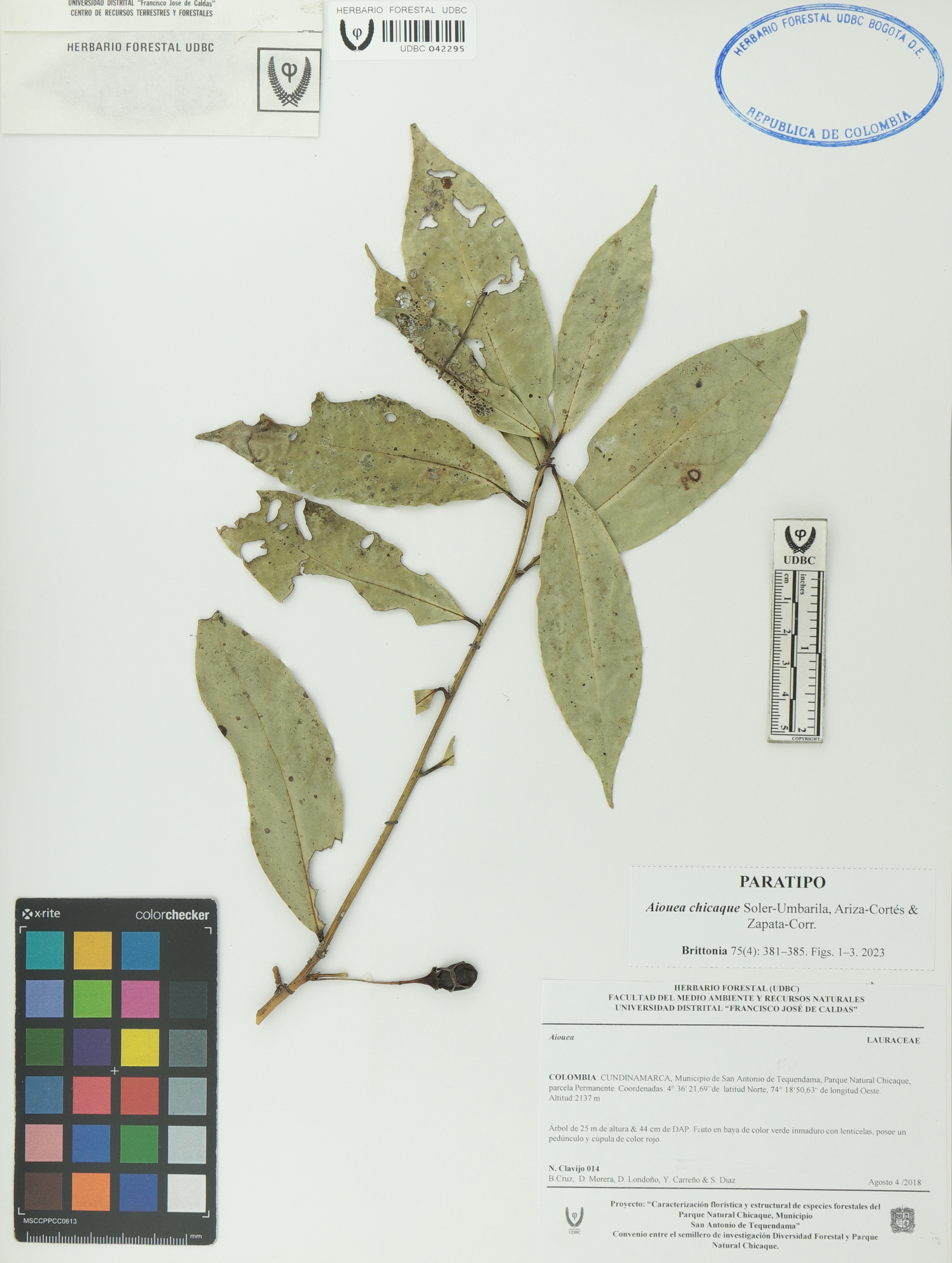 | dc.description | Fotografía del ejemplar Clavijo, N. 14, Paratipo de Aiouea chicaque | |