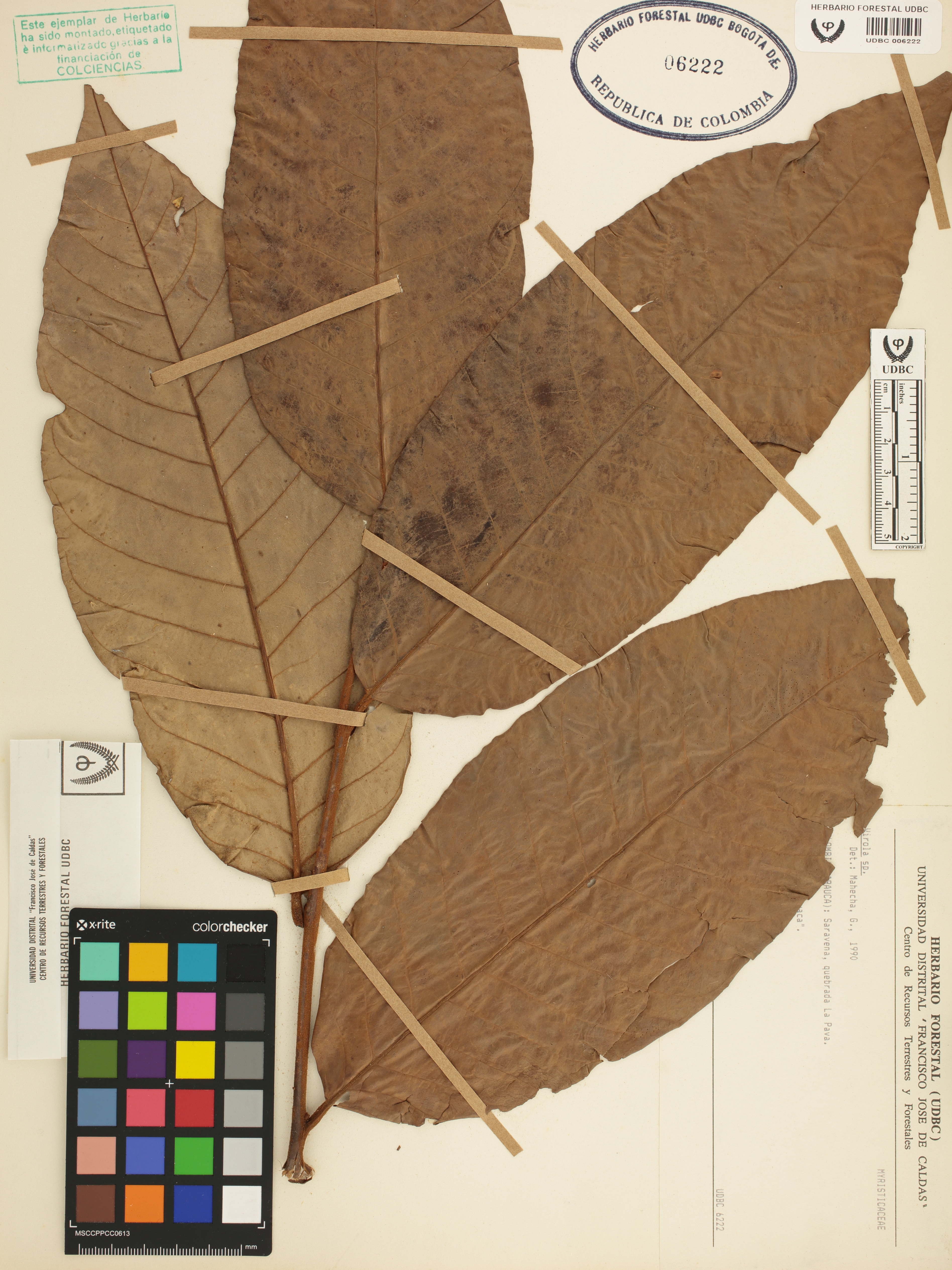 Fotografía del ejemplar Goitia, D. 677, determinado como Virola sp. en el año 1990