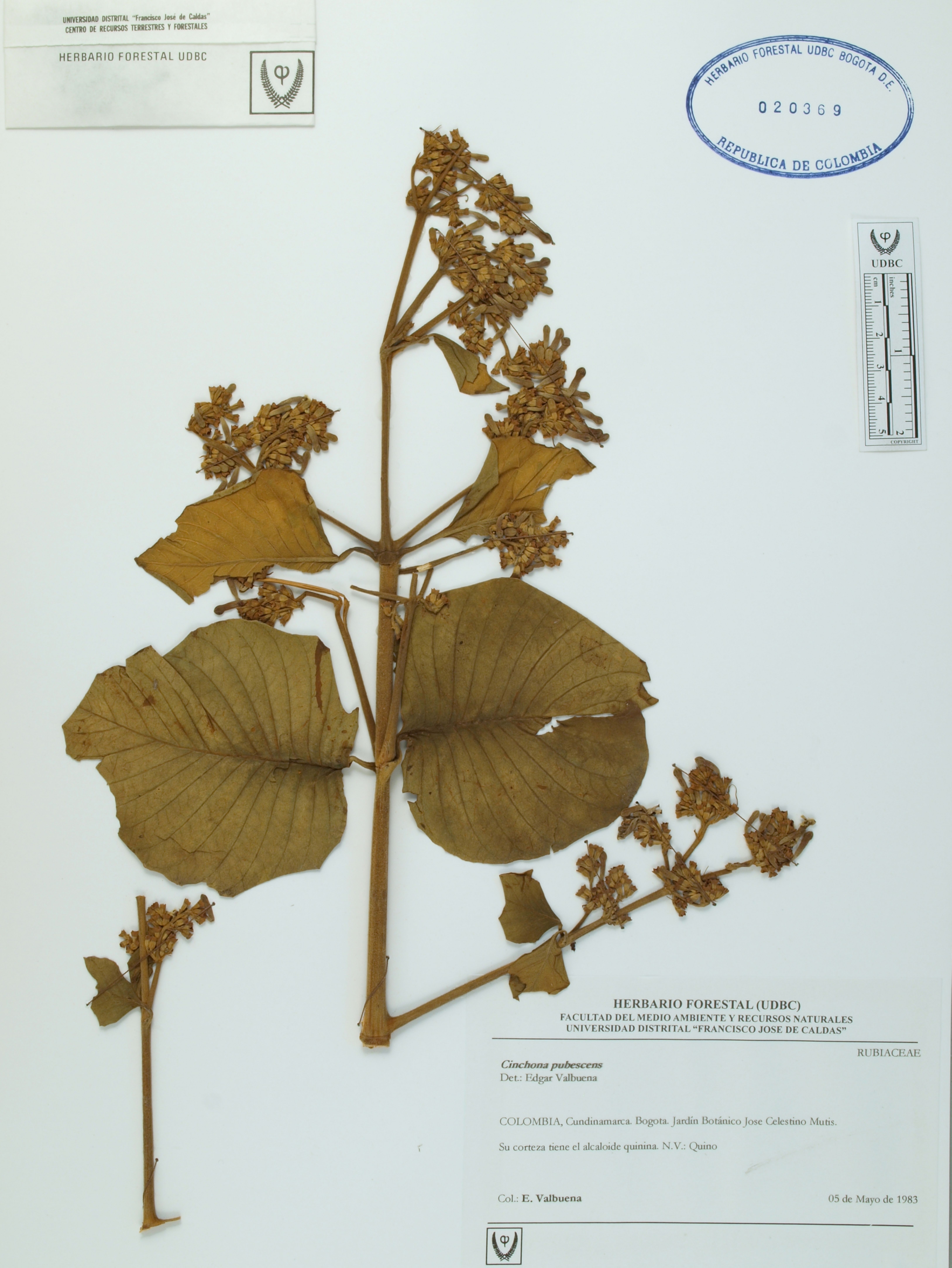 Fotografía del ejemplar Valbuena, E., determinado como Cinchona pubescens