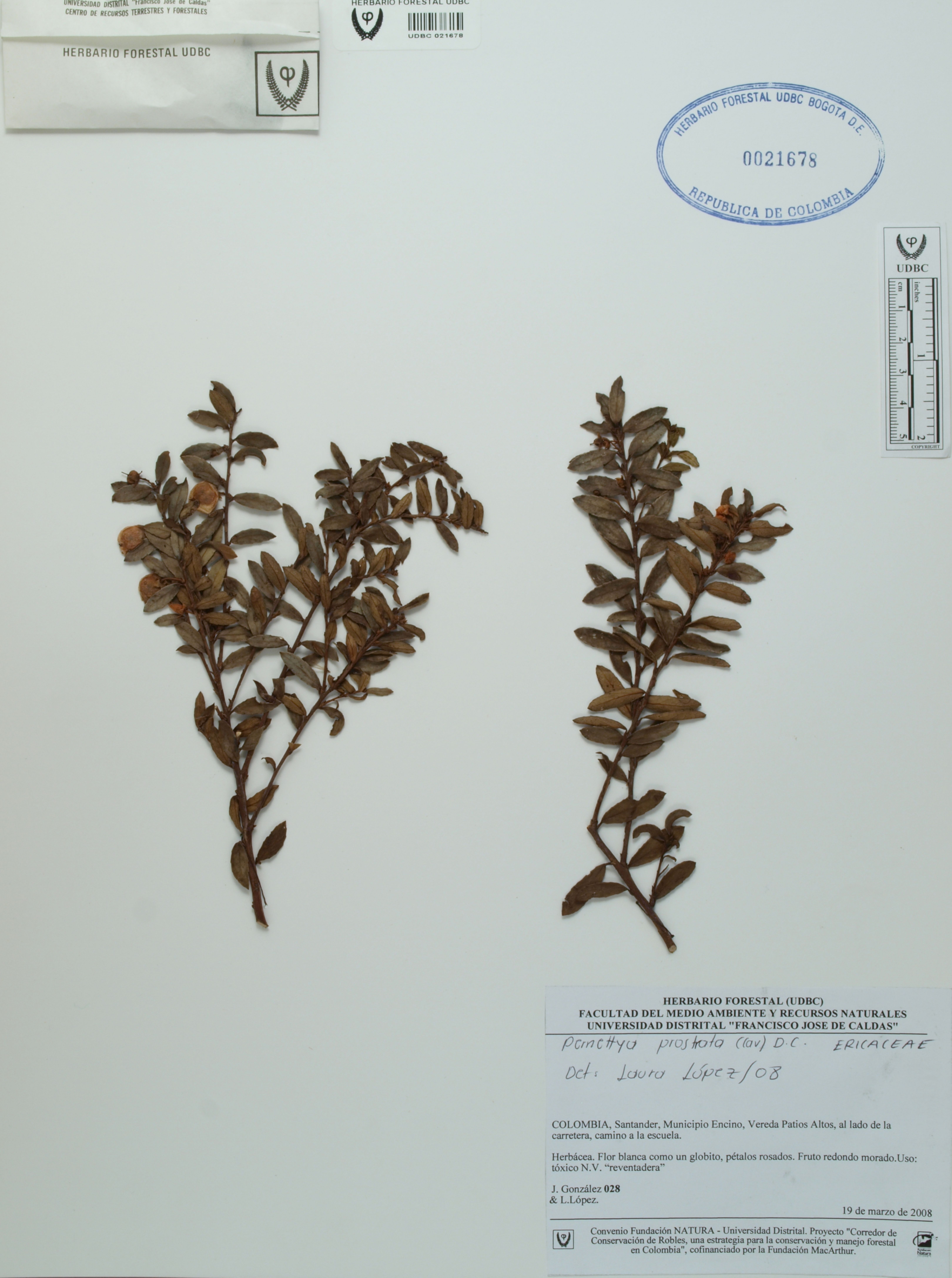 Fotografía del ejemplar González, J. 28, determinado como Pernettya prostrata en el año 2008