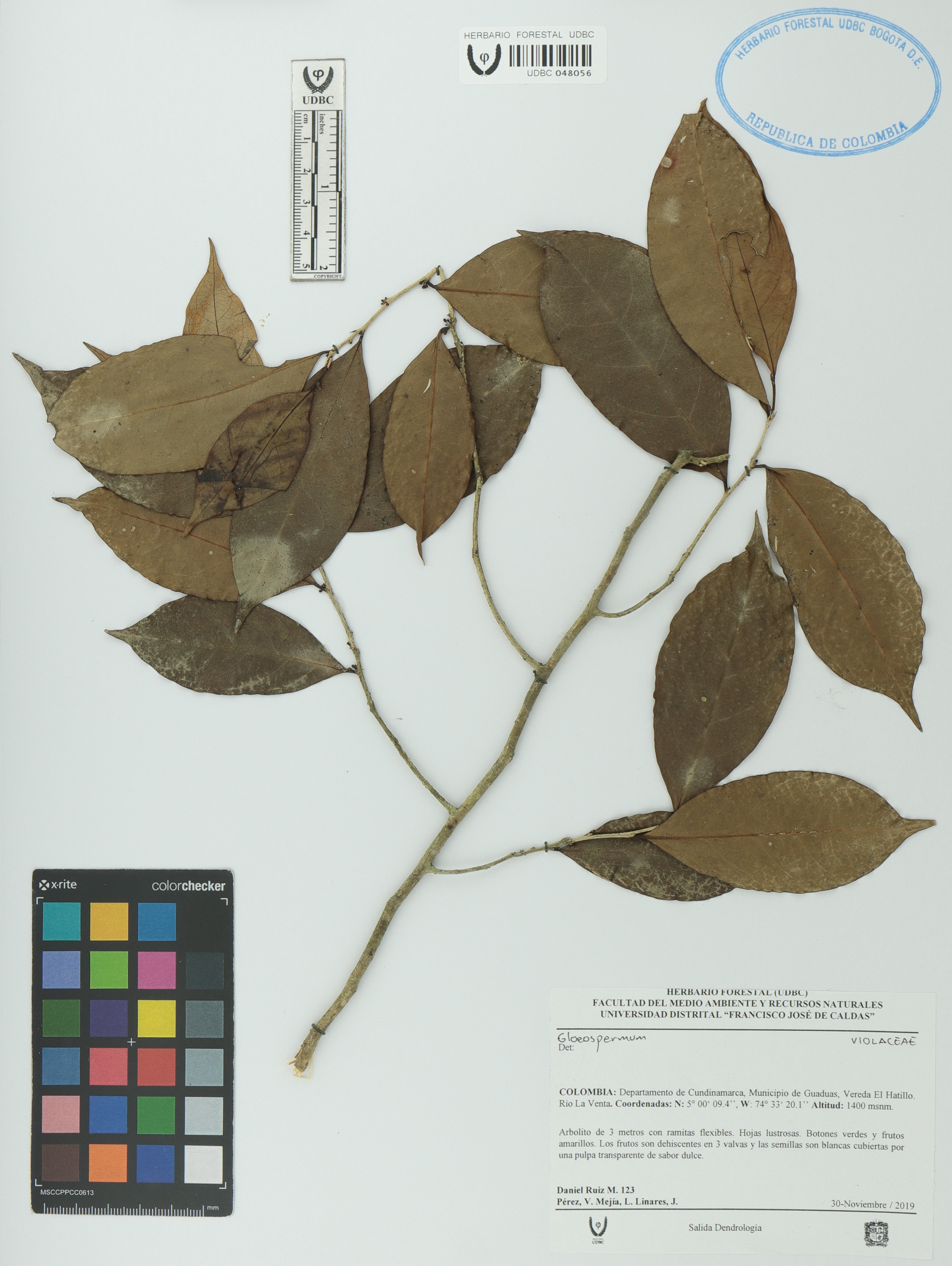 Fotografía del ejemplar Ruiz, D. 123, determinado como Gloeospermum sp.