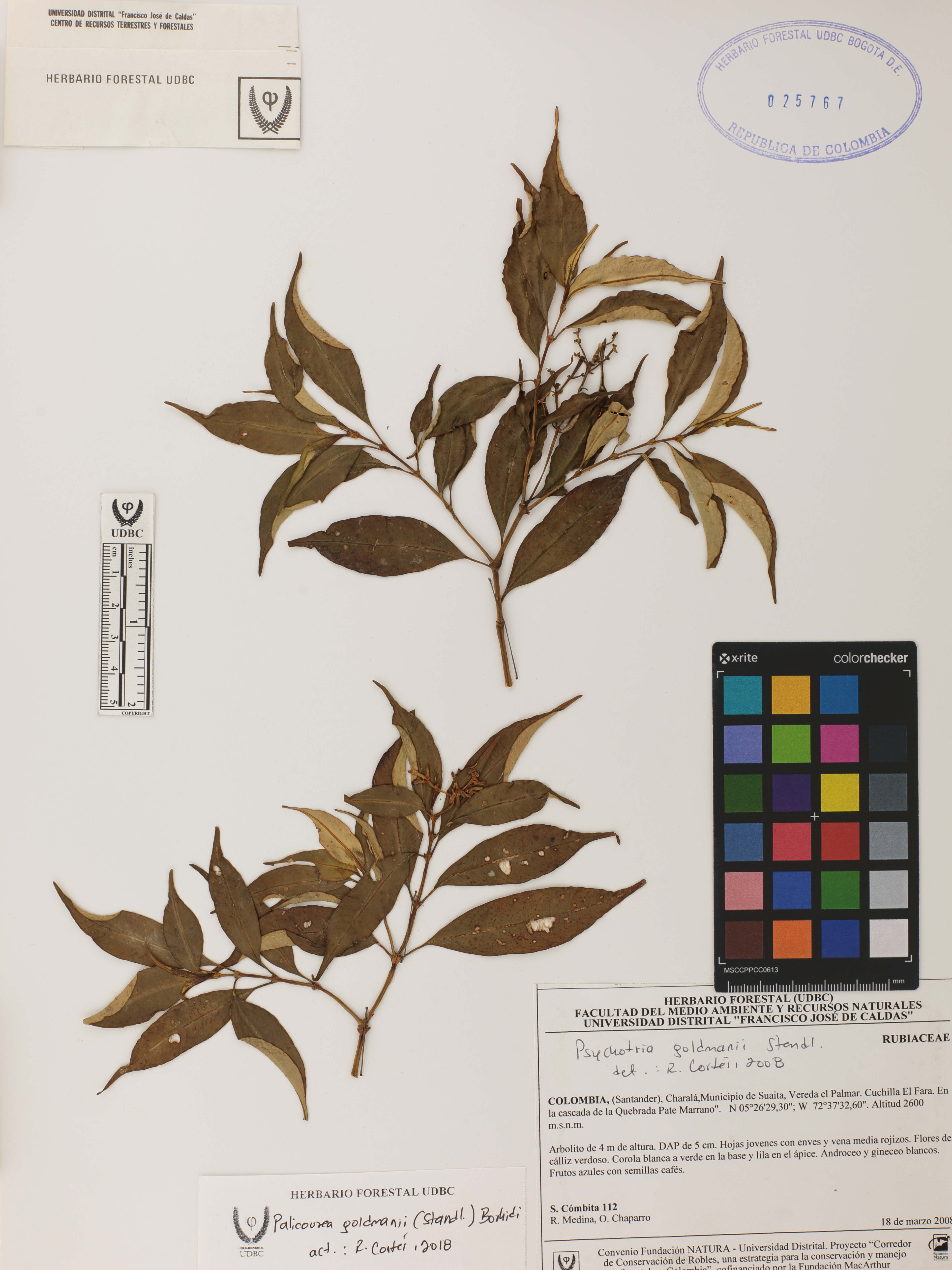 Fotografía del ejemplar Cómbita, S. 112, determinado como Palicourea goldmanii en el año 2008