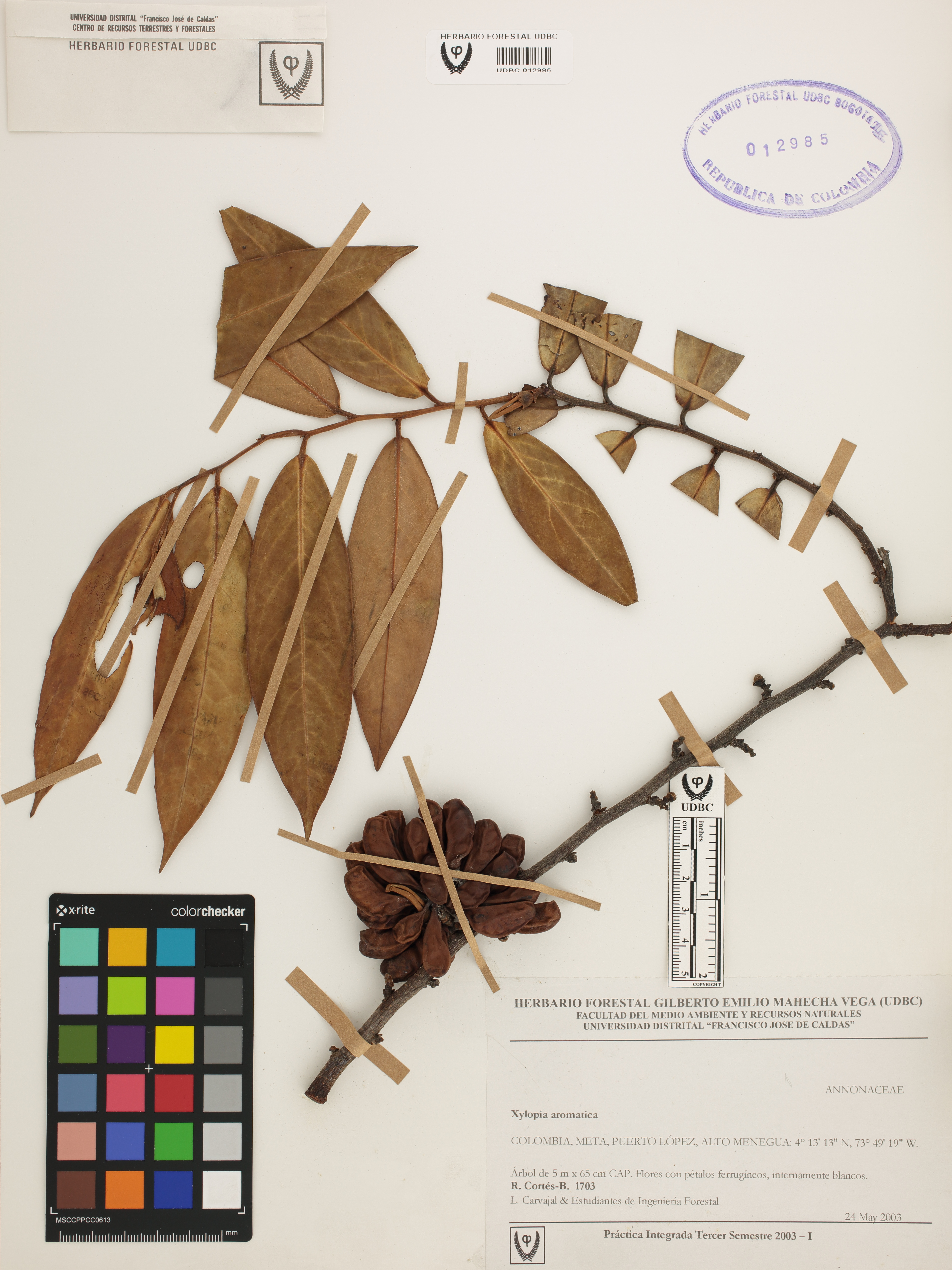 Fotografía del ejemplar Cortés-B., R. 1703, determinado como Xylopia aromatica