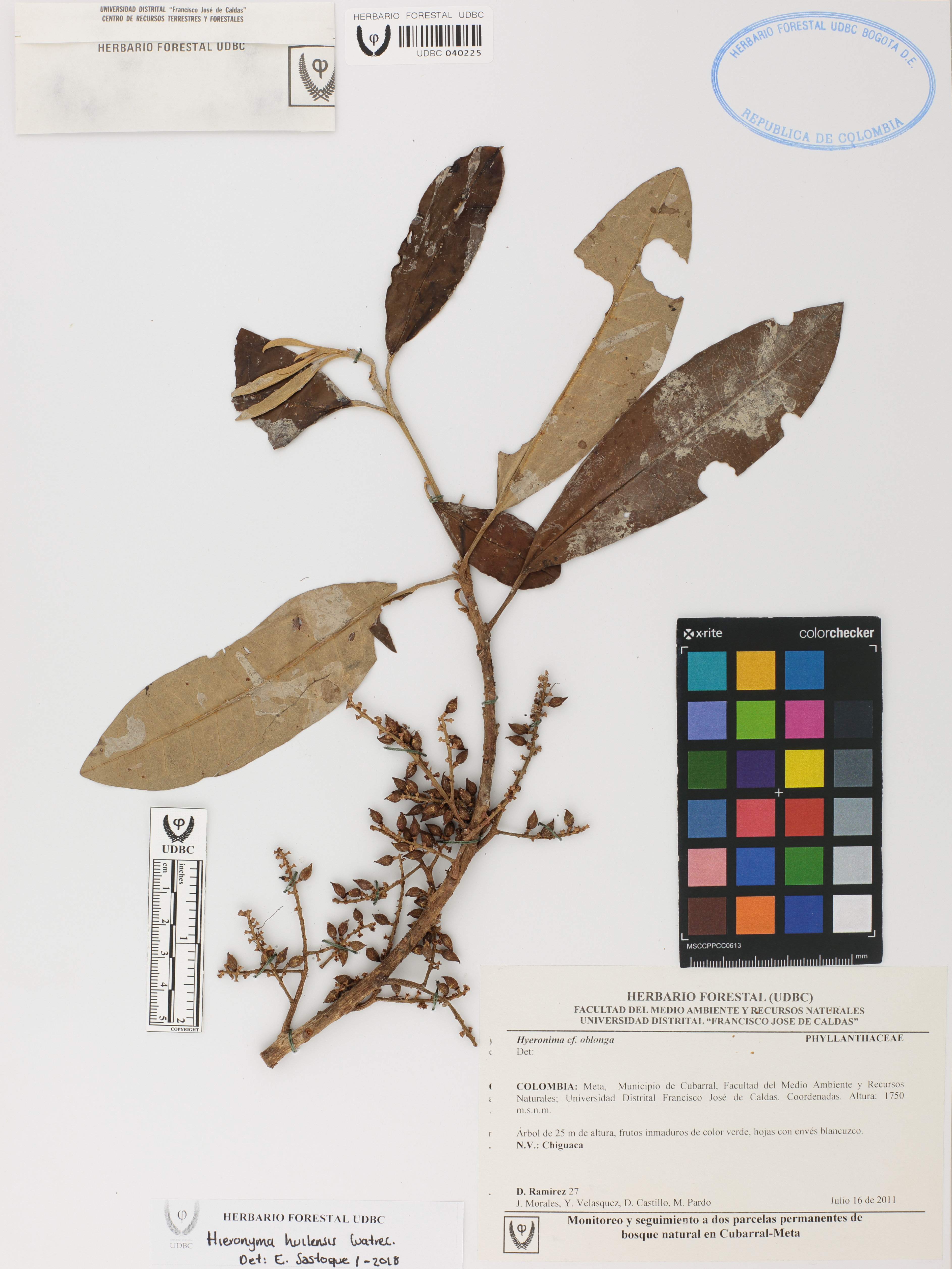 | dc.description | Fotografía del ejemplar Ramírez, D. 27, determinado como Hieronyma huilensis en el año 2018 | |