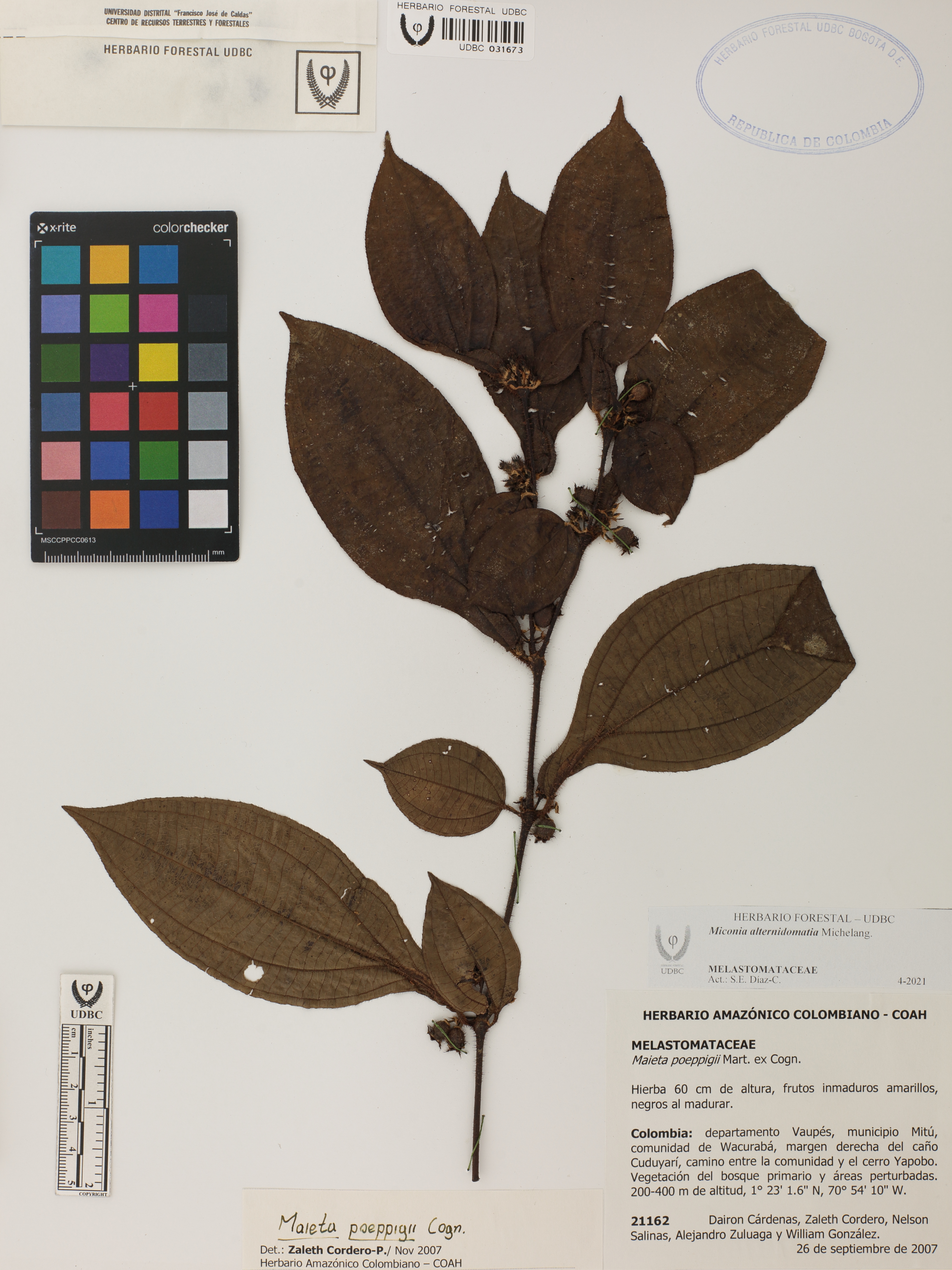 | dc.description | Fotografía del ejemplar Cárdenas, D. 21162, determinado como Miconia alternidomatia en el año 2007 | |