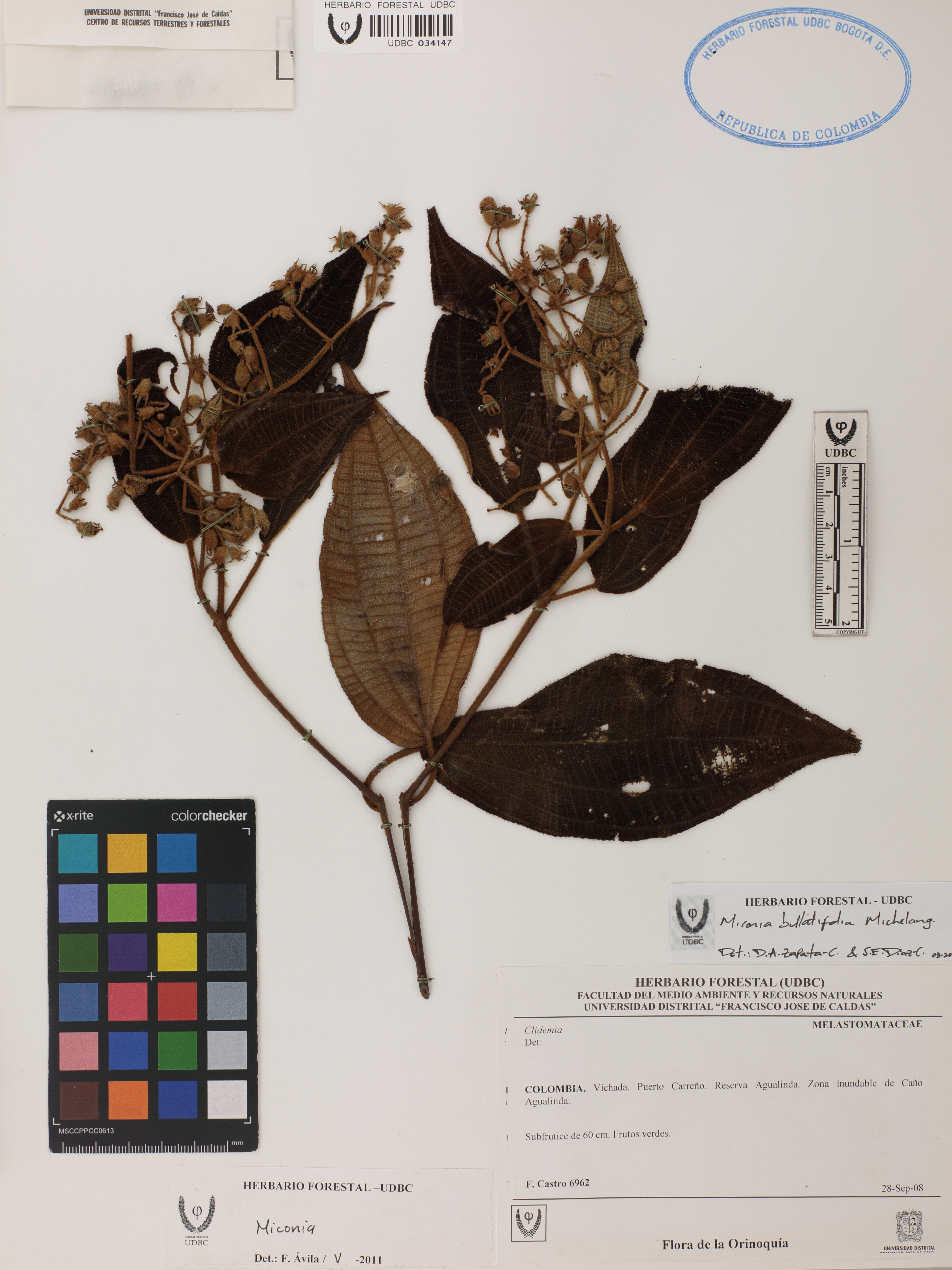 | dc.description | Fotografía del ejemplar Castro, F. 6962, determinado como Miconia strigillosa en el año 2022 | |
