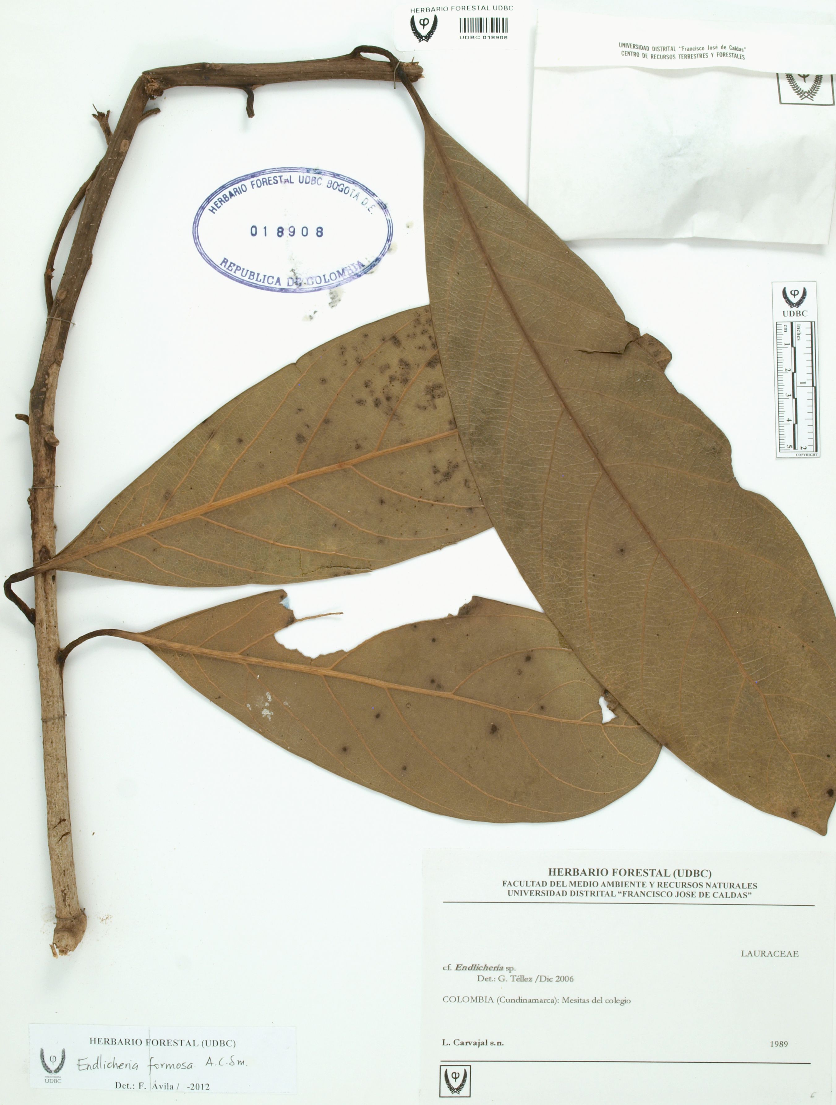 | dc.description | Fotografía del ejemplar Carvajal, L., determinado como Endlicheria formosa en el año 2012 | |