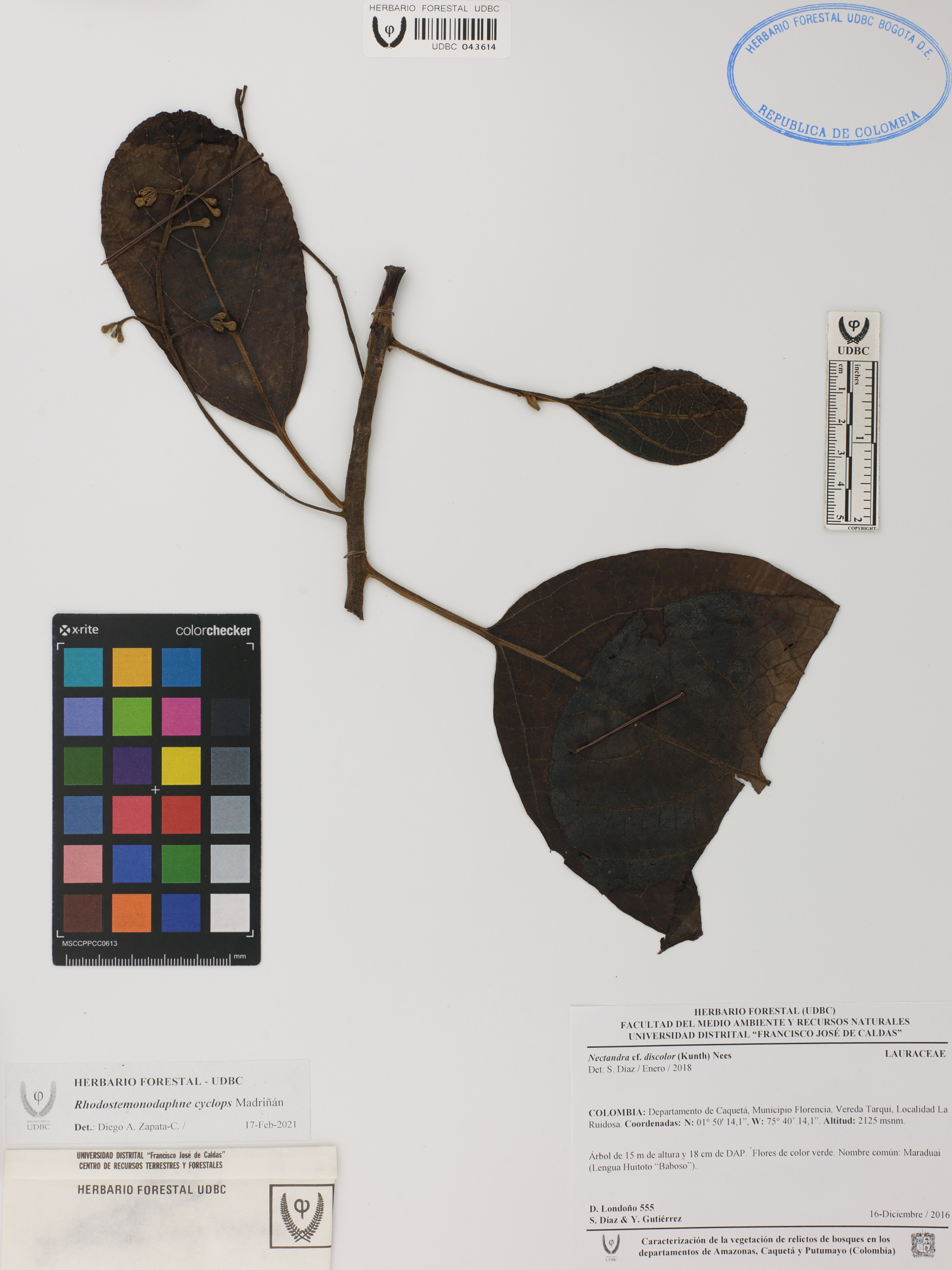 | dc.description | Fotografía del ejemplar Londoño, D. 555, determinado como Rhodostemonodaphne cyclops en el año 2021 | |