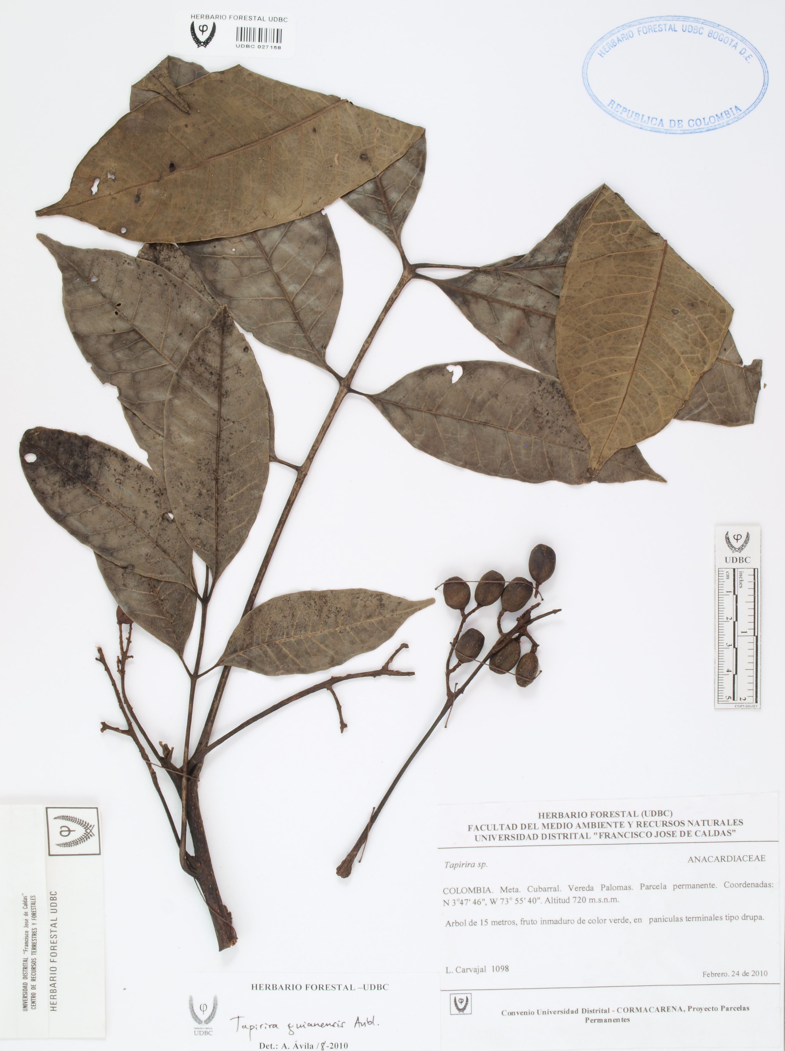 | dc.description | Fotografía del ejemplar Carvajal, L. 1098, determinado como Tapirira guianensis en el año 2010 | |