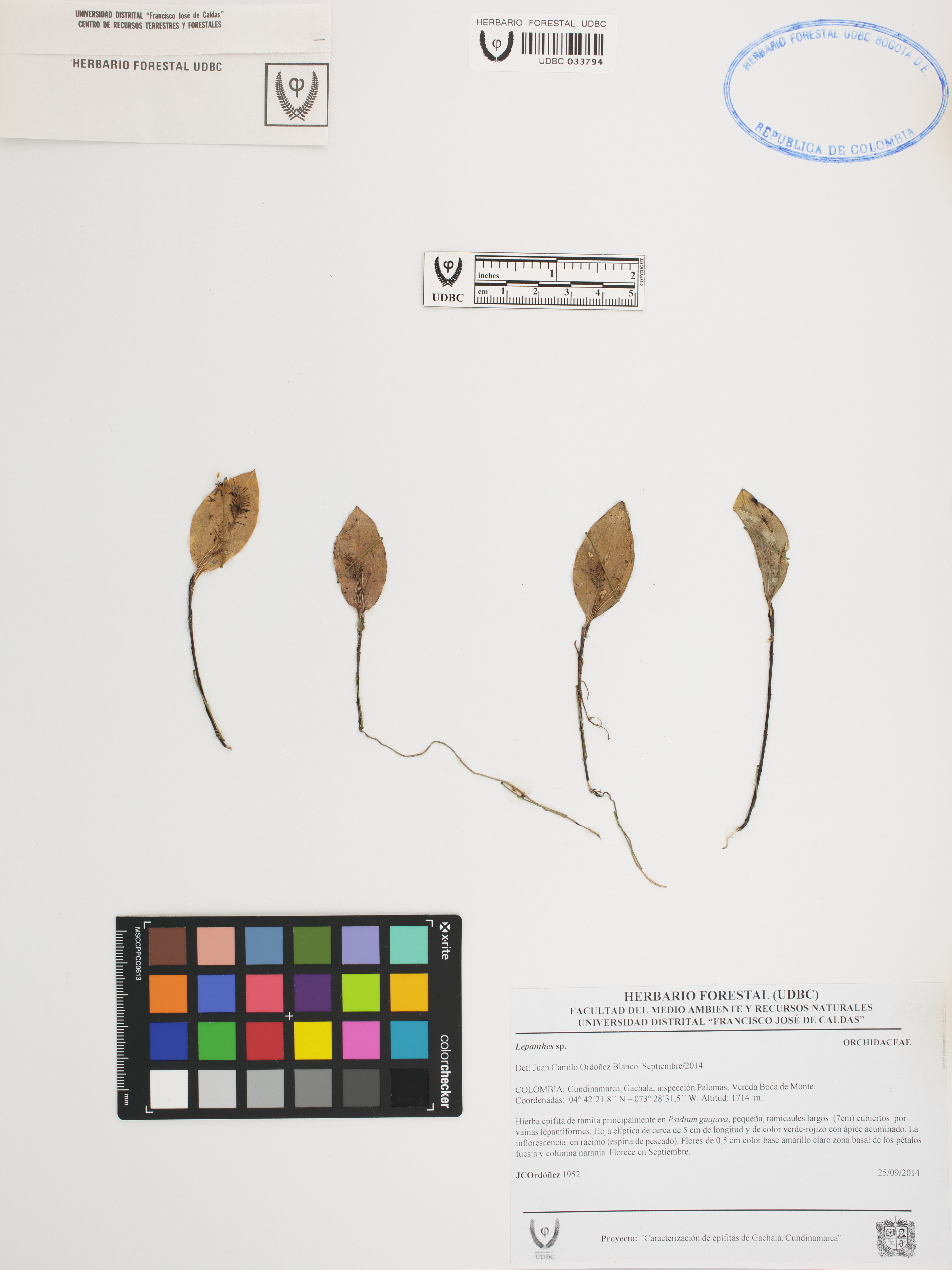 Fotografía del ejemplar Ordóñez, J. 1952, determinado como Lepanthes sp. en el año 2014