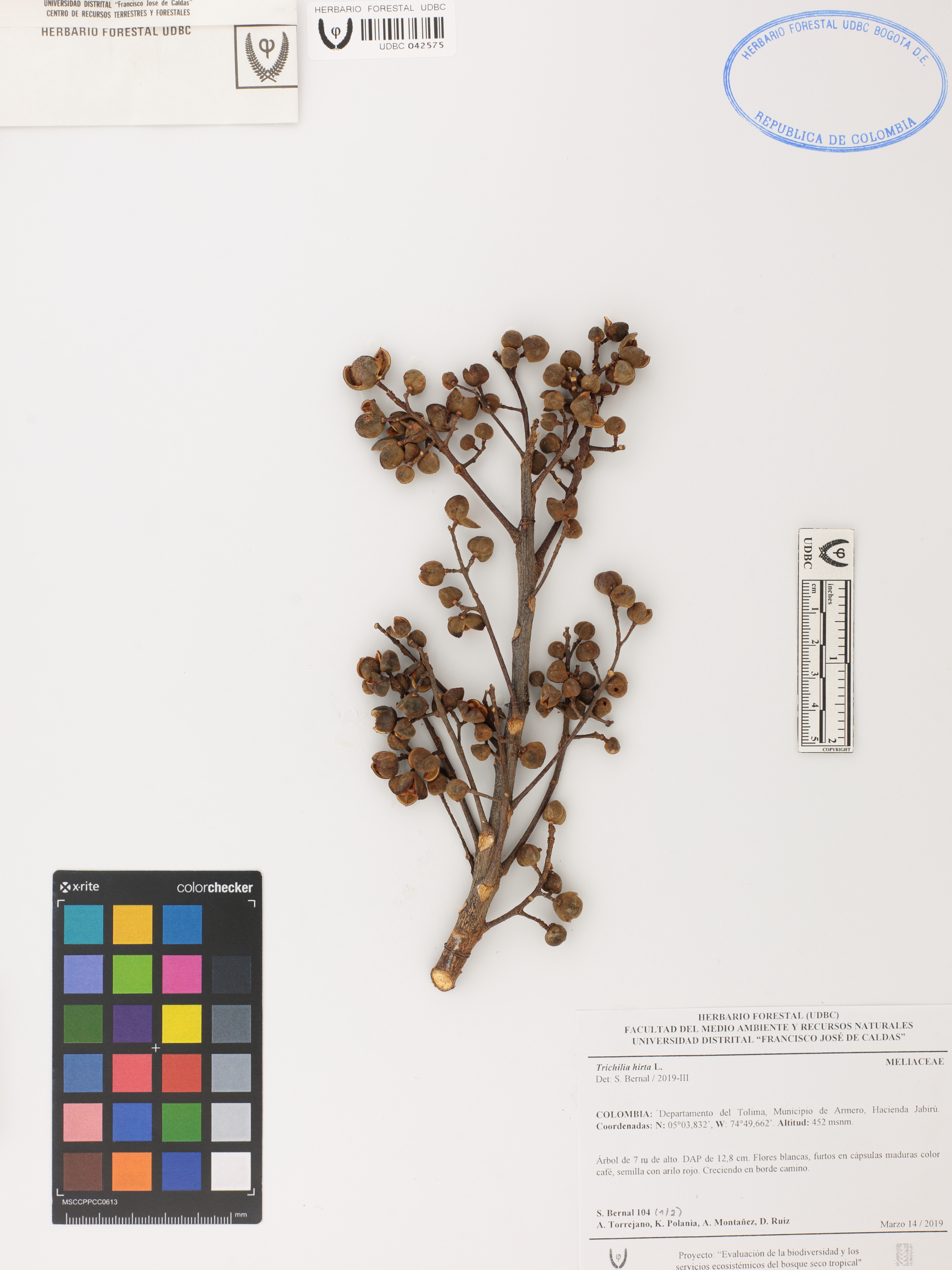 Fotografía del ejemplar Bernal, S. 104, determinado como Trichilia hirta en el año 2019