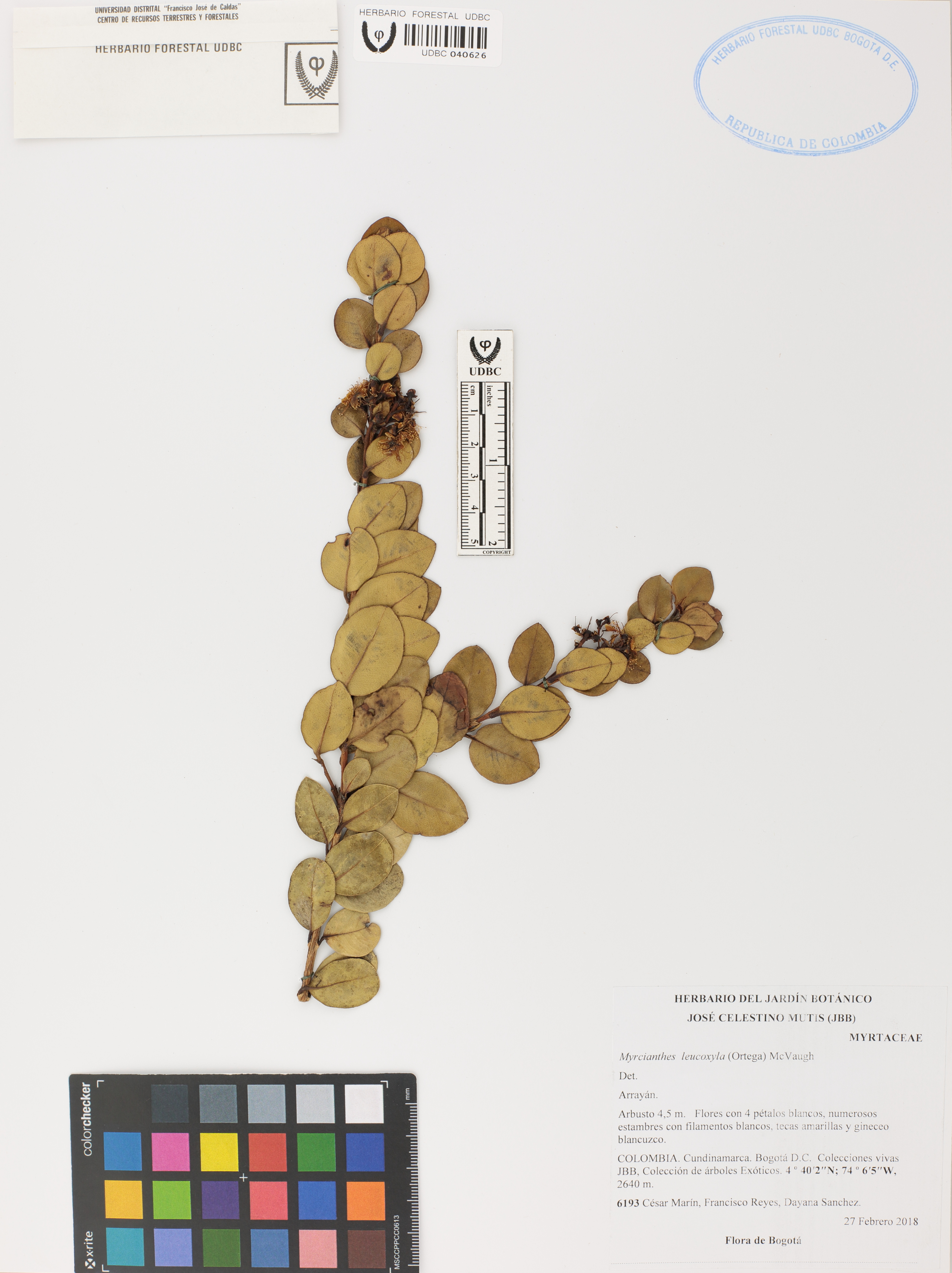 Fotografía del ejemplar Marín, C. 6193, determinado como Myrcianthes leucoxyla