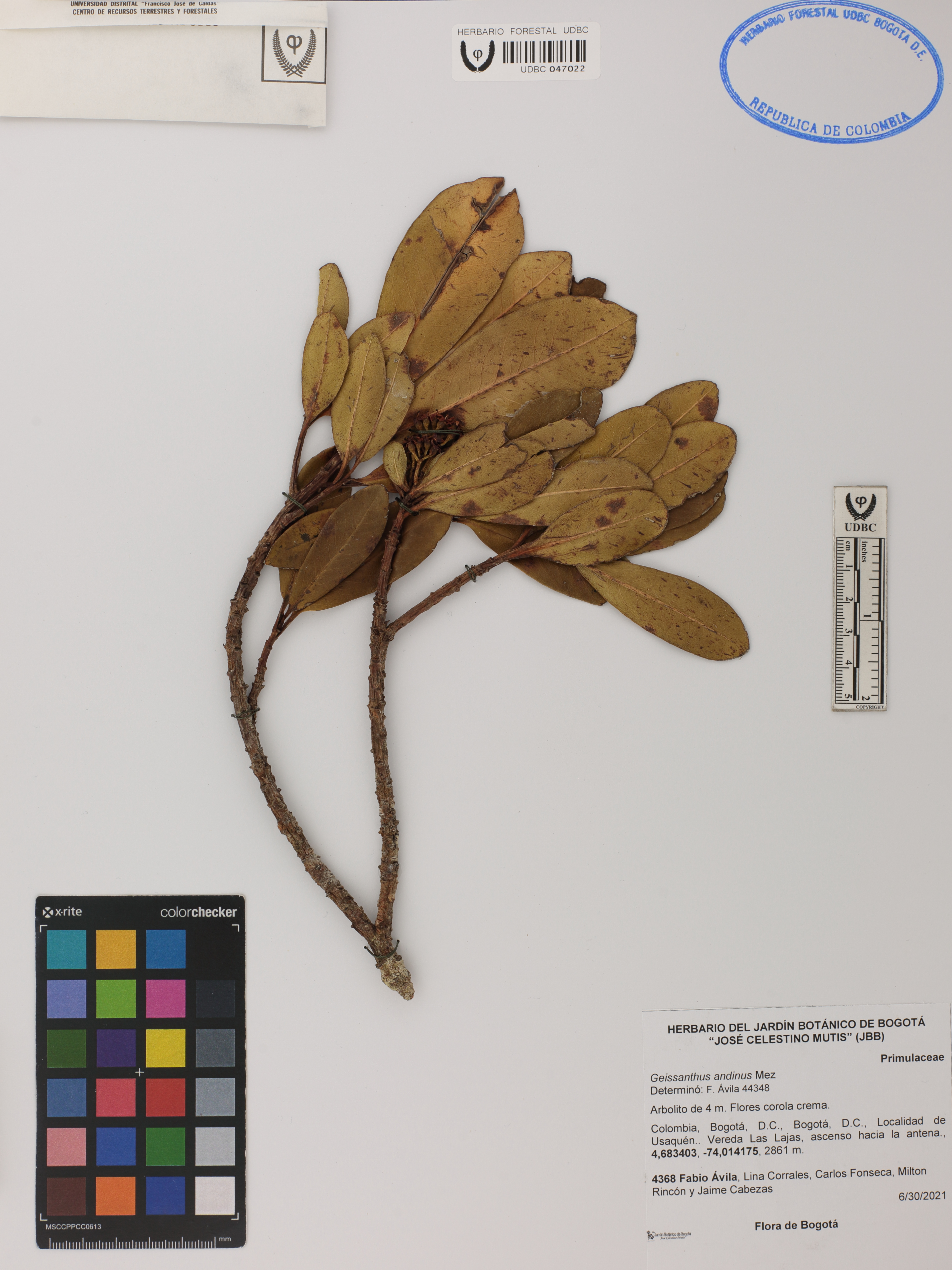| dc.description | Fotografía del ejemplar Ávila, F. 4368, determinado como Geissanthus andinus en el año 2021 | |