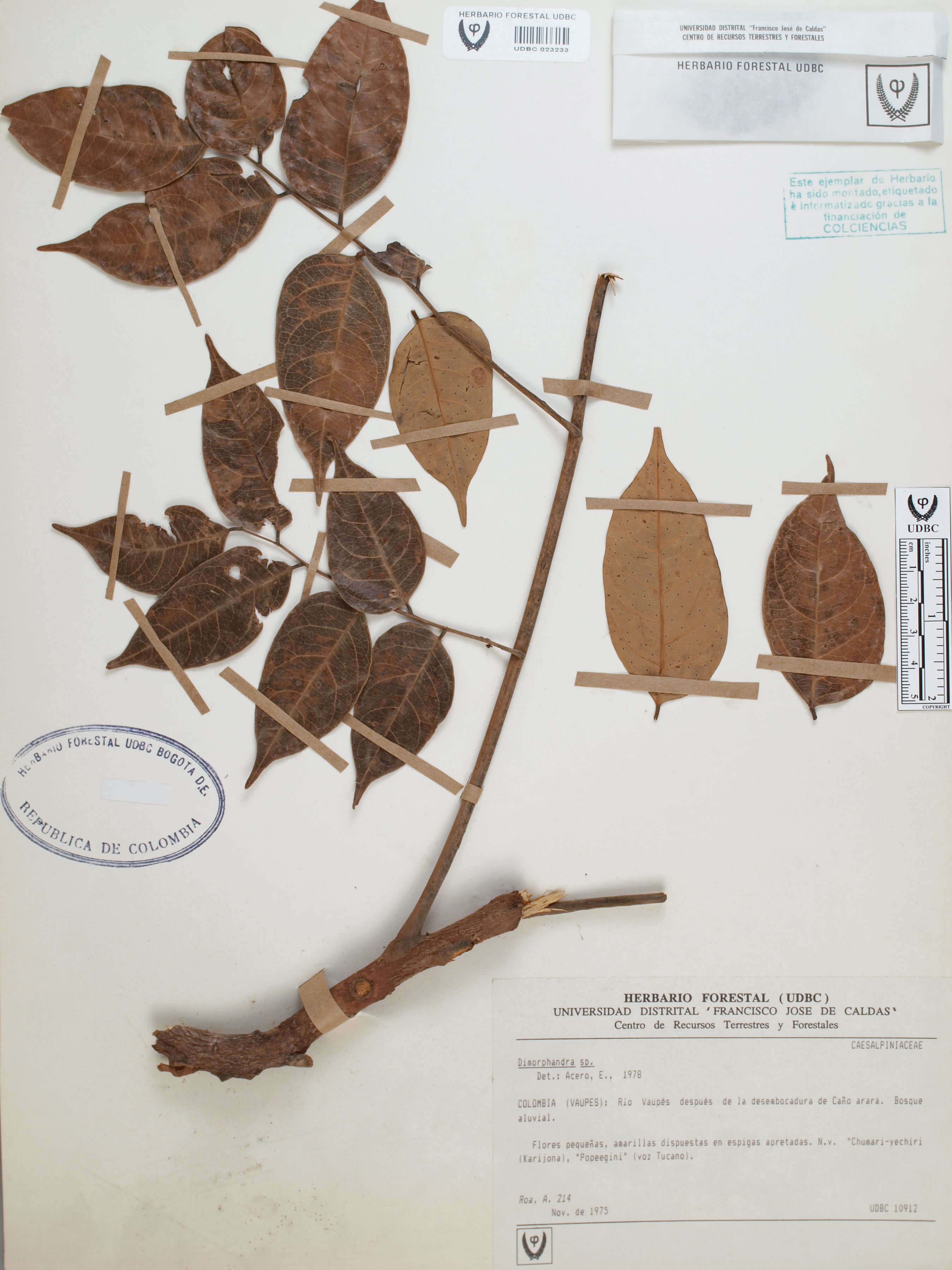 | dc.description | Fotografía del ejemplar Roa, A. 214, determinado como Dimorphandra sp. en el año 1978 | |