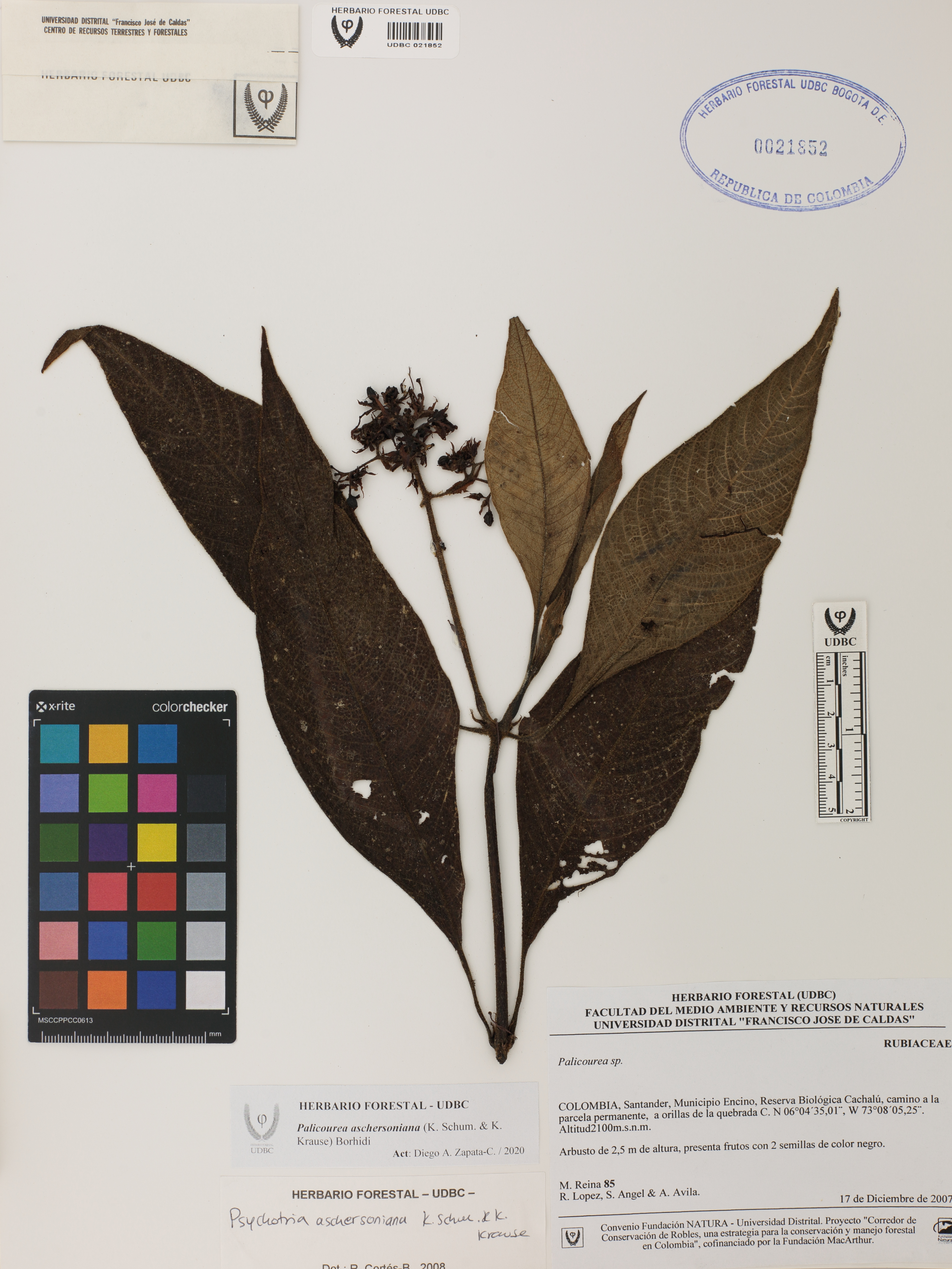 | dc.description | Fotografía del ejemplar Reina, M. 85, determinado como Palicourea aschersoniana en el año 2008 | |
