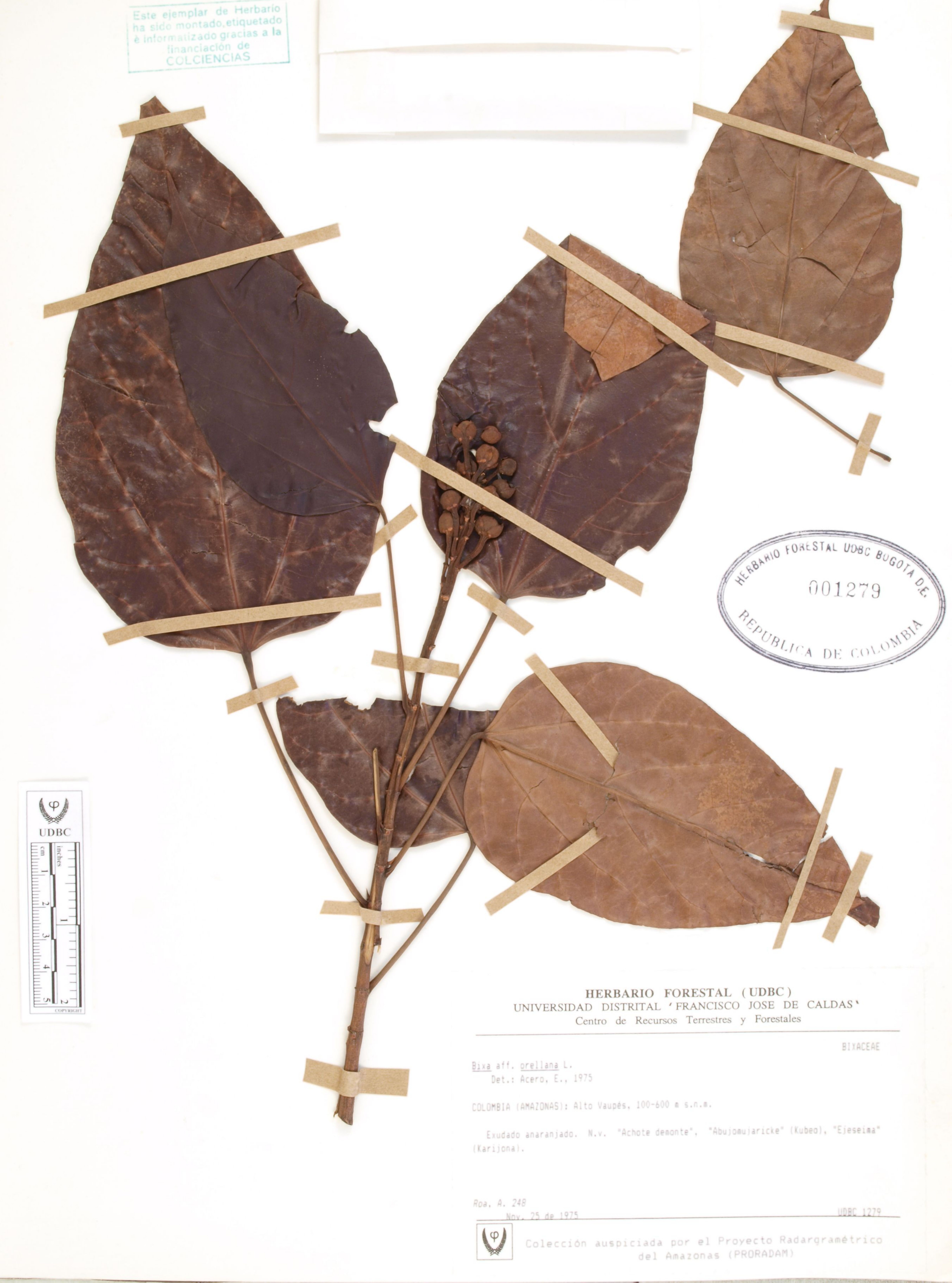 Fotografía del ejemplar Roa, A. 248, determinado como Bixa orellana en el año 1975
