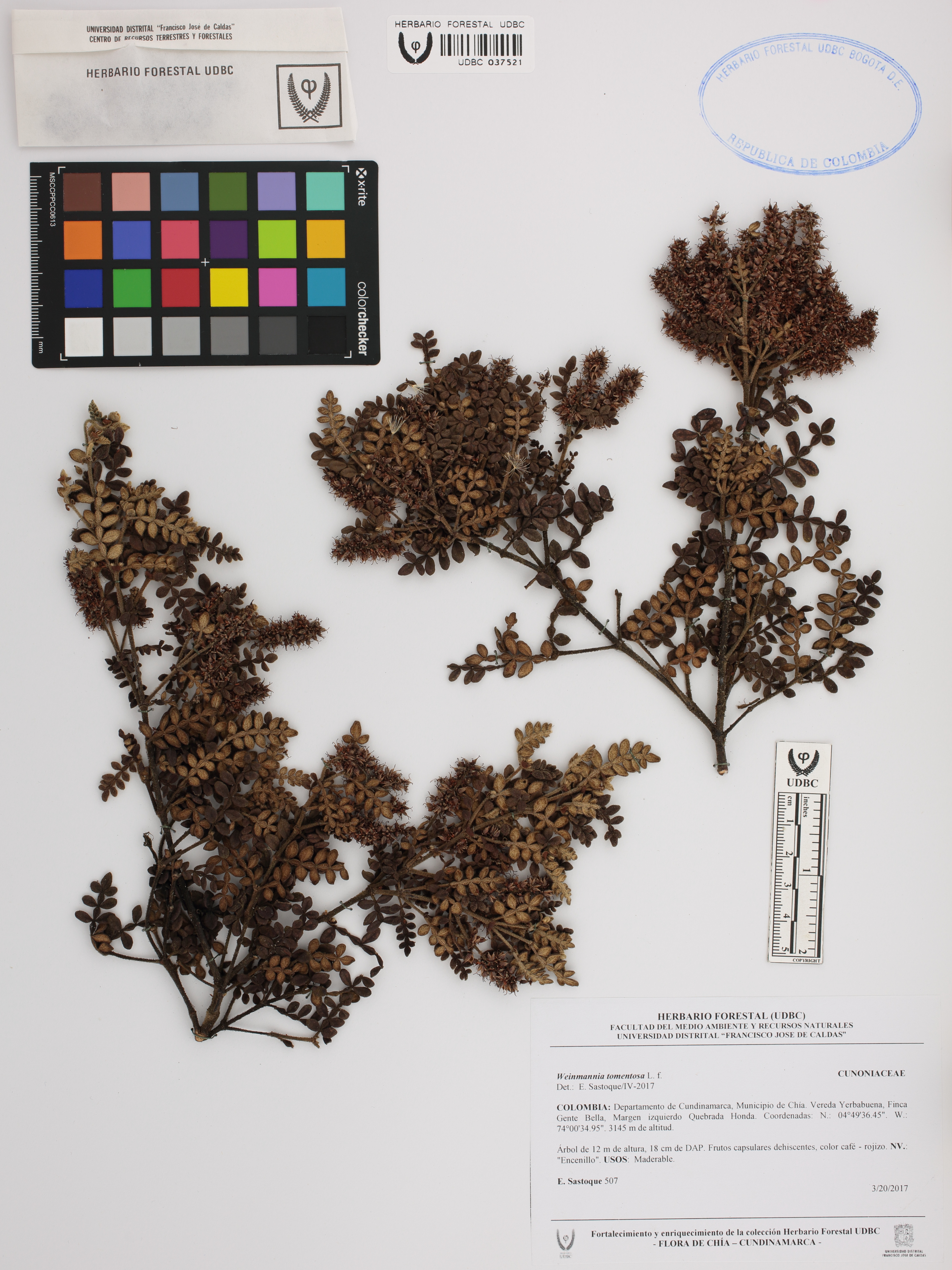 | dc.description | Fotografía del ejemplar Sastoque, E. 507, determinado como Weinmannia tomentosa en el año 2017 | |