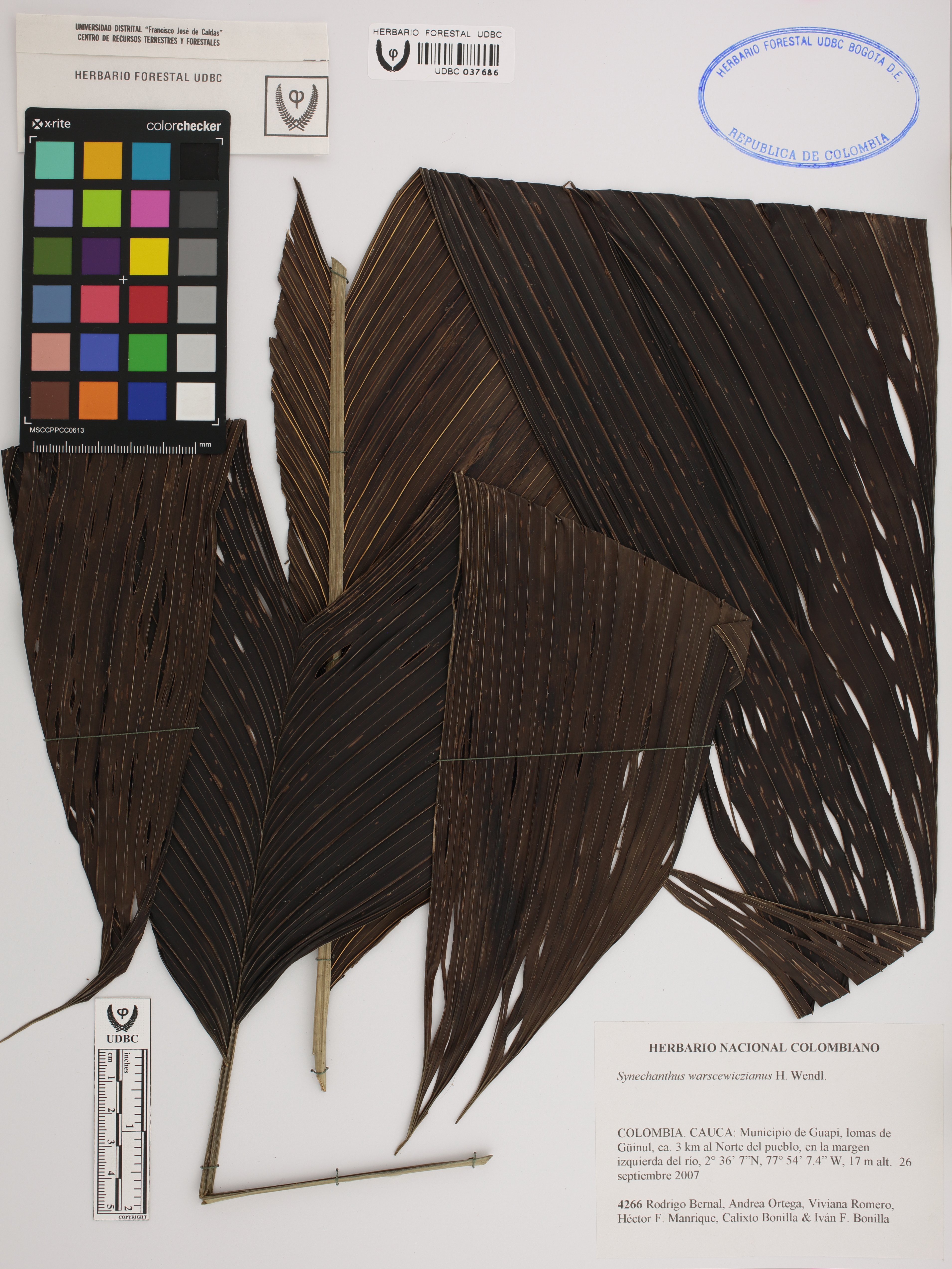 Fotografía del ejemplar Bernal, R. 4266, determinado como Synechanthus warscewiczianus