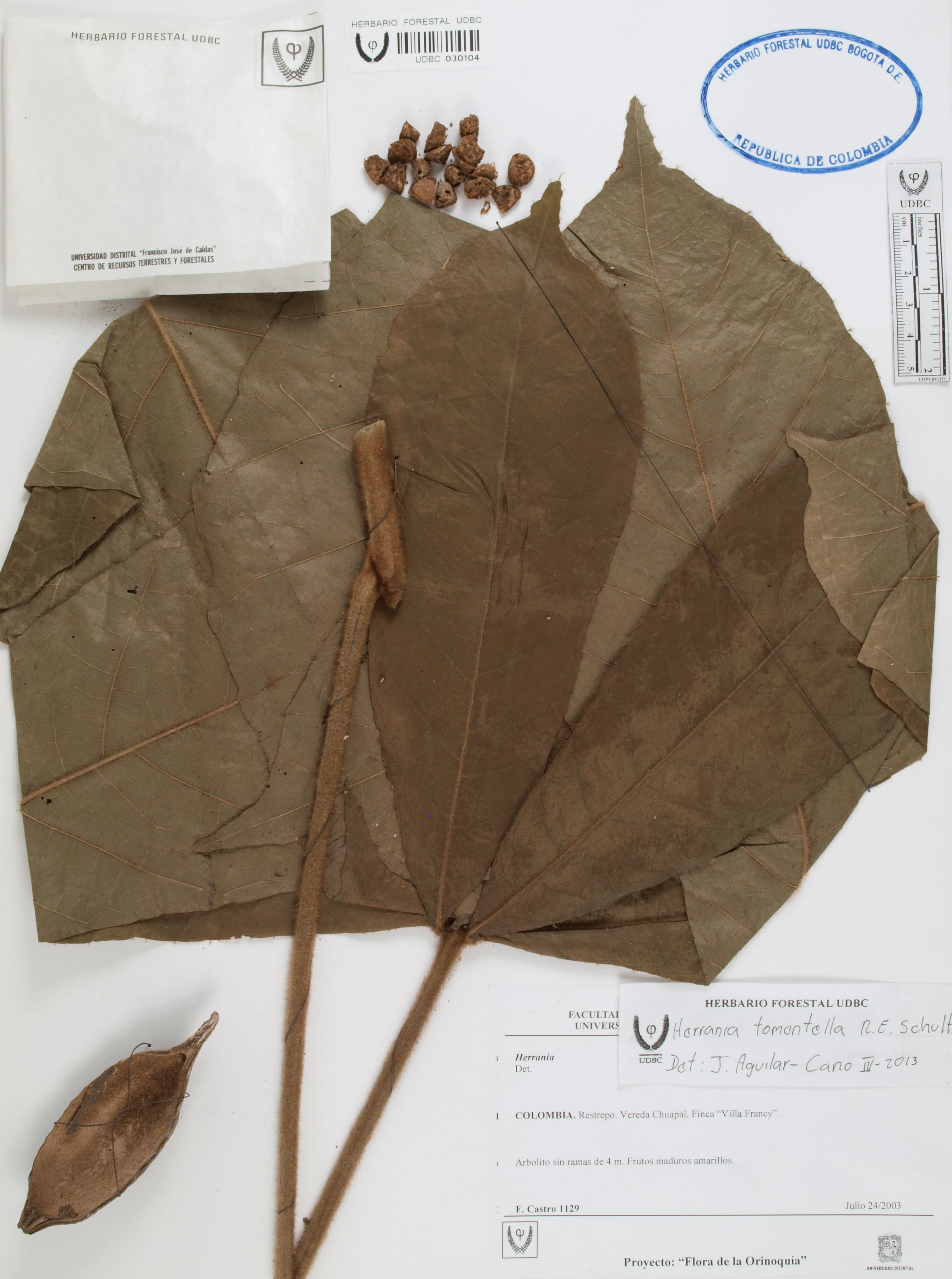 | dc.description | Fotografía del ejemplar Castro, F. 1129, determinado como Theobroma tomentellum en el año 2013 | |