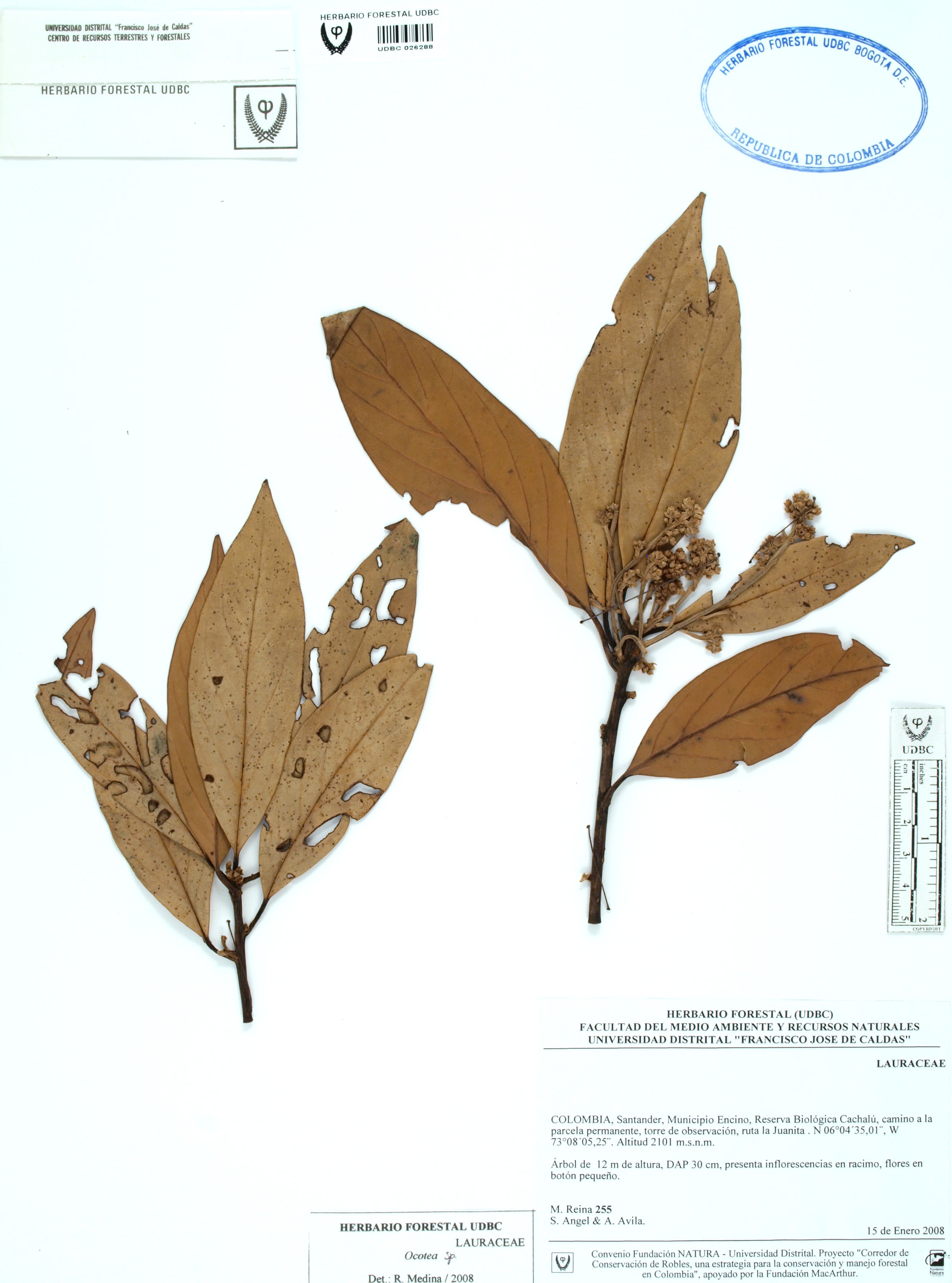 Fotografía del ejemplar Reina, M. 255, determinado como Persea sp. en el año 2021