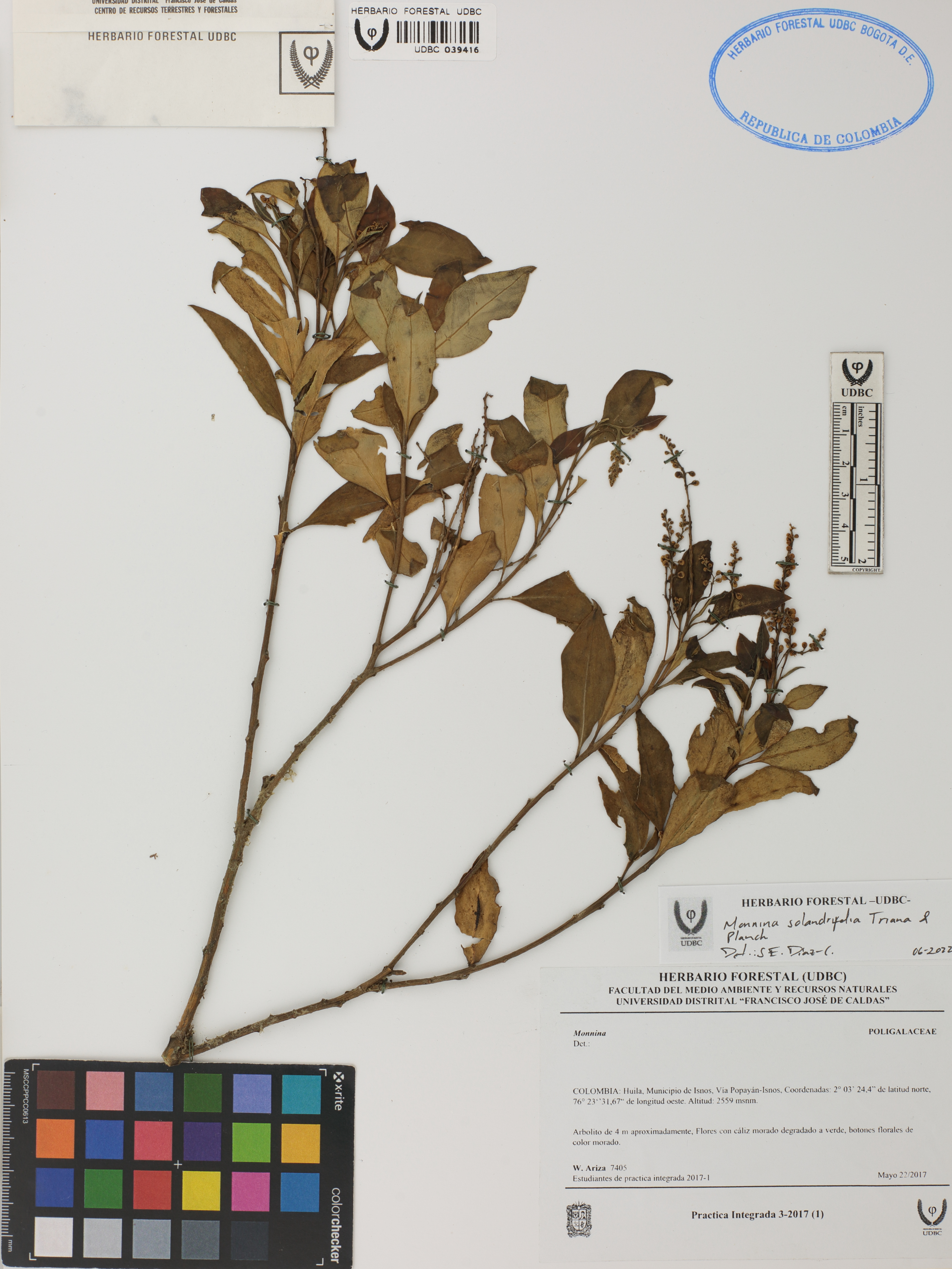 | dc.description | Fotografía del ejemplar Ariza, W. 7405, determinado como Monnina solandrifolia en el año 2022 | |
