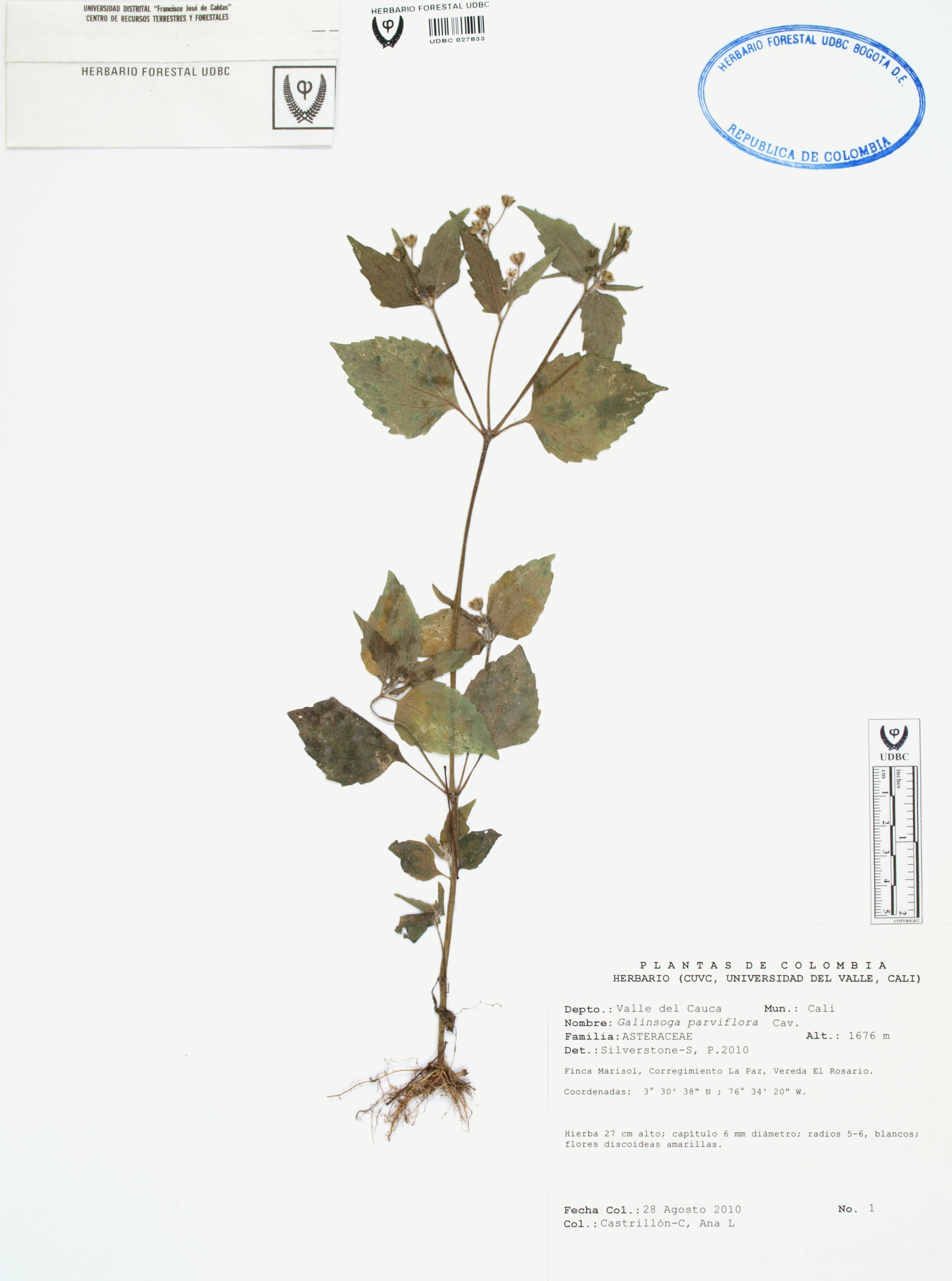 Fotografía del ejemplar Castrillón-C., A. 1, determinado como Galinsoga parviflora en el año 2010