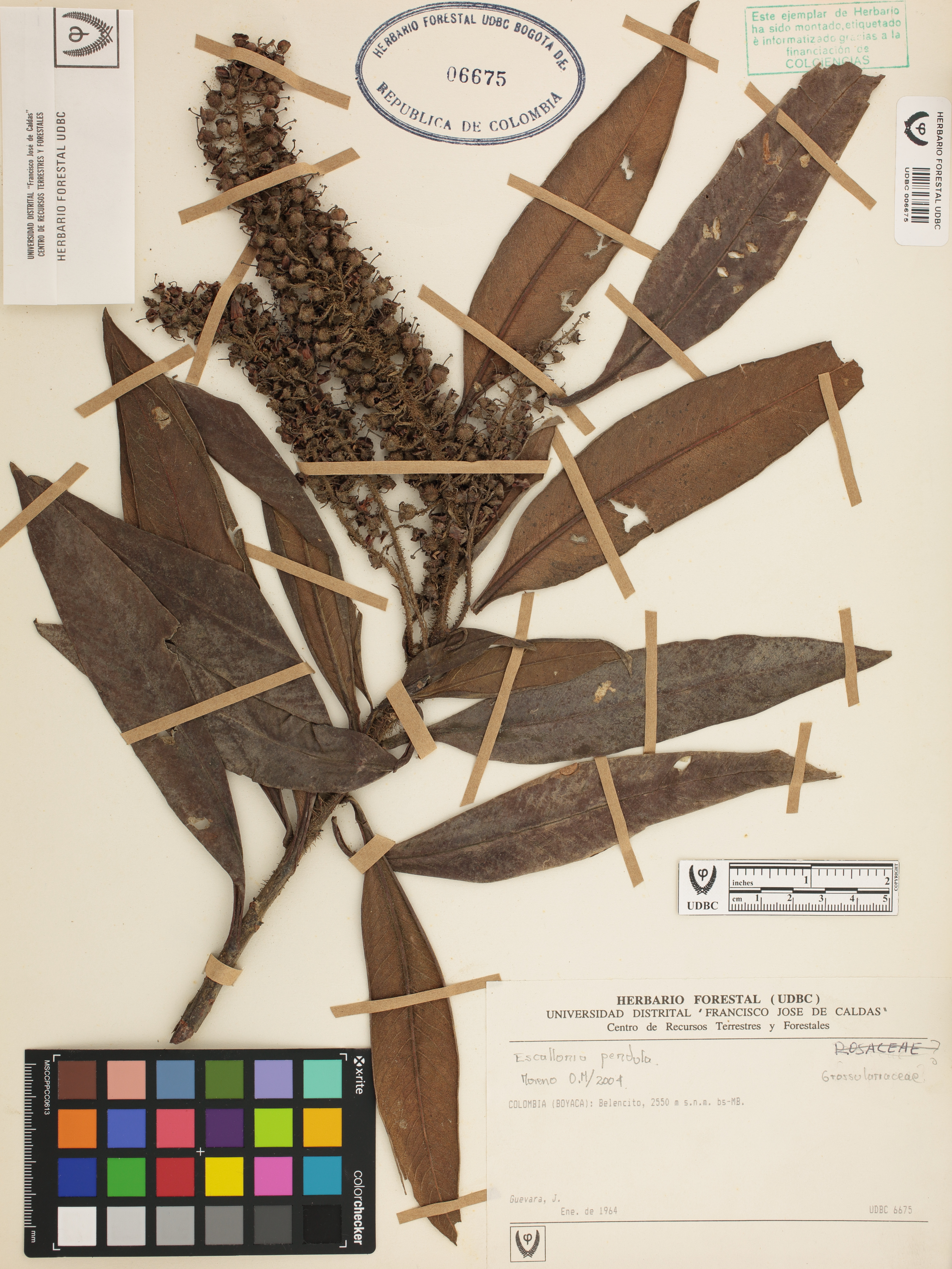 Fotografía del ejemplar SD, determinado como Escallonia pendula en el año 2004
