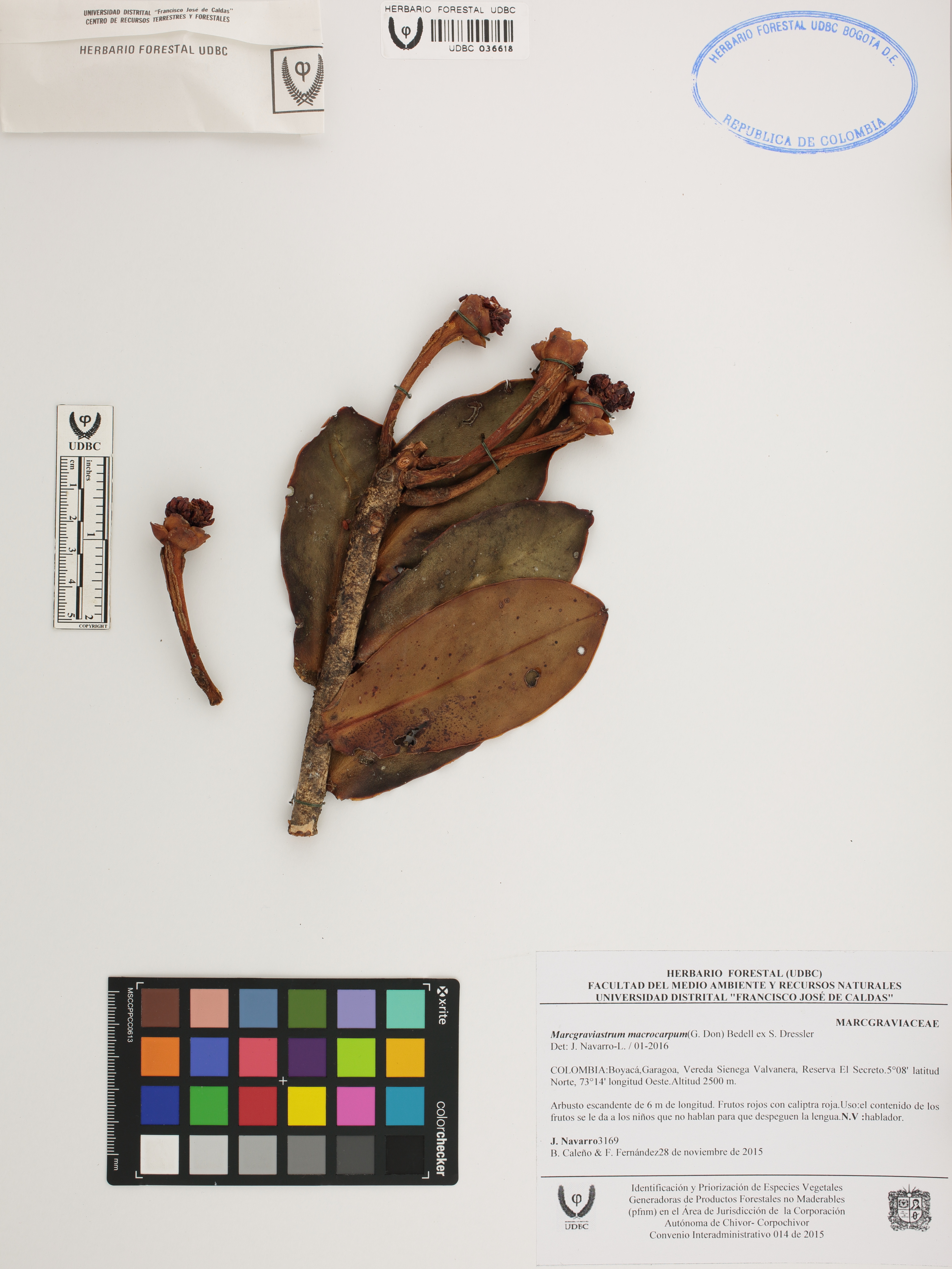 | dc.description | Fotografía del ejemplar Navarro, J. 3169, determinado como Marcgraviastrum macrocarpum en el año 2016 | |