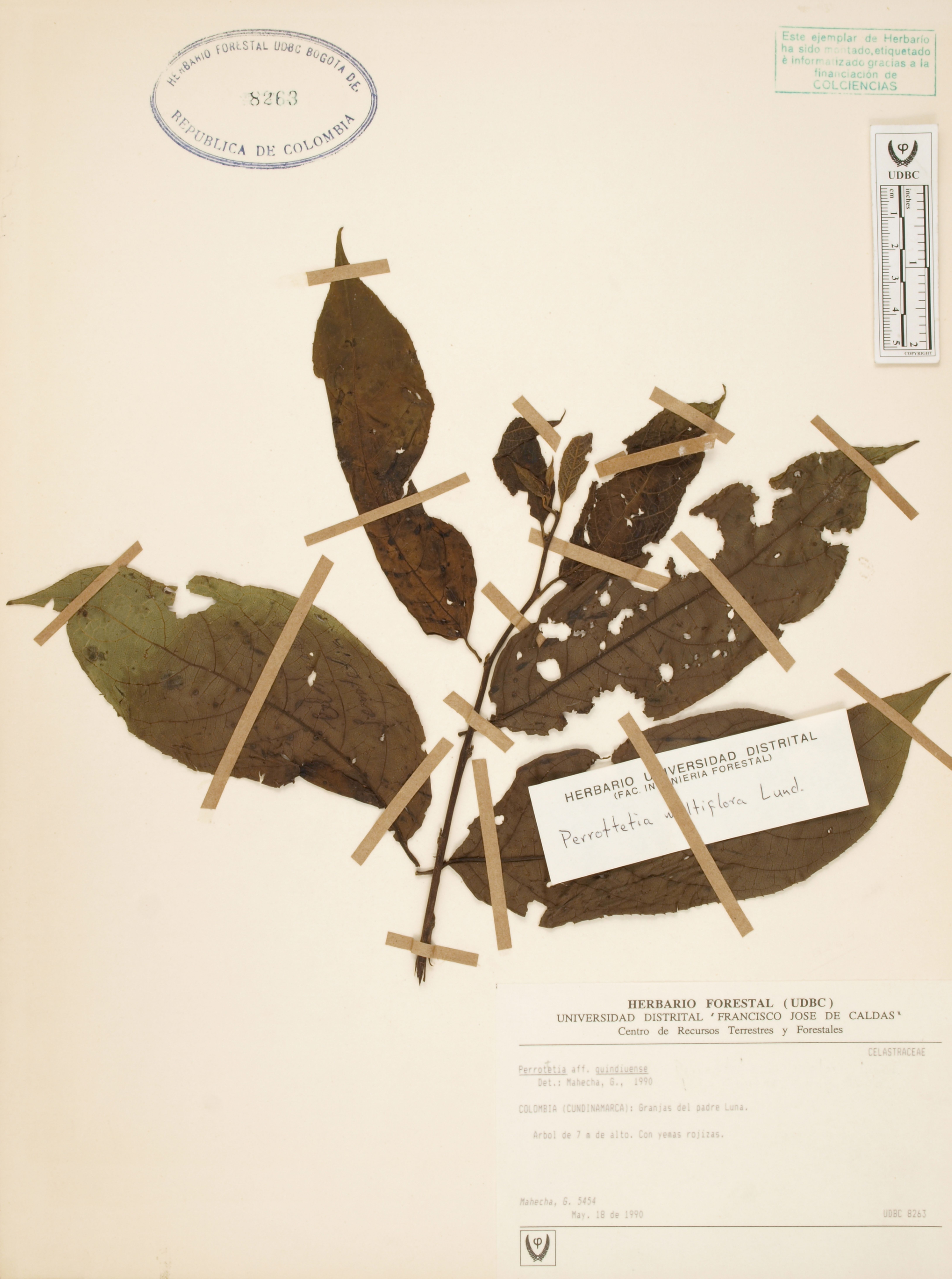 Fotografía del ejemplar Mahecha, G. 5453, determinado como Perrottetia multiflora