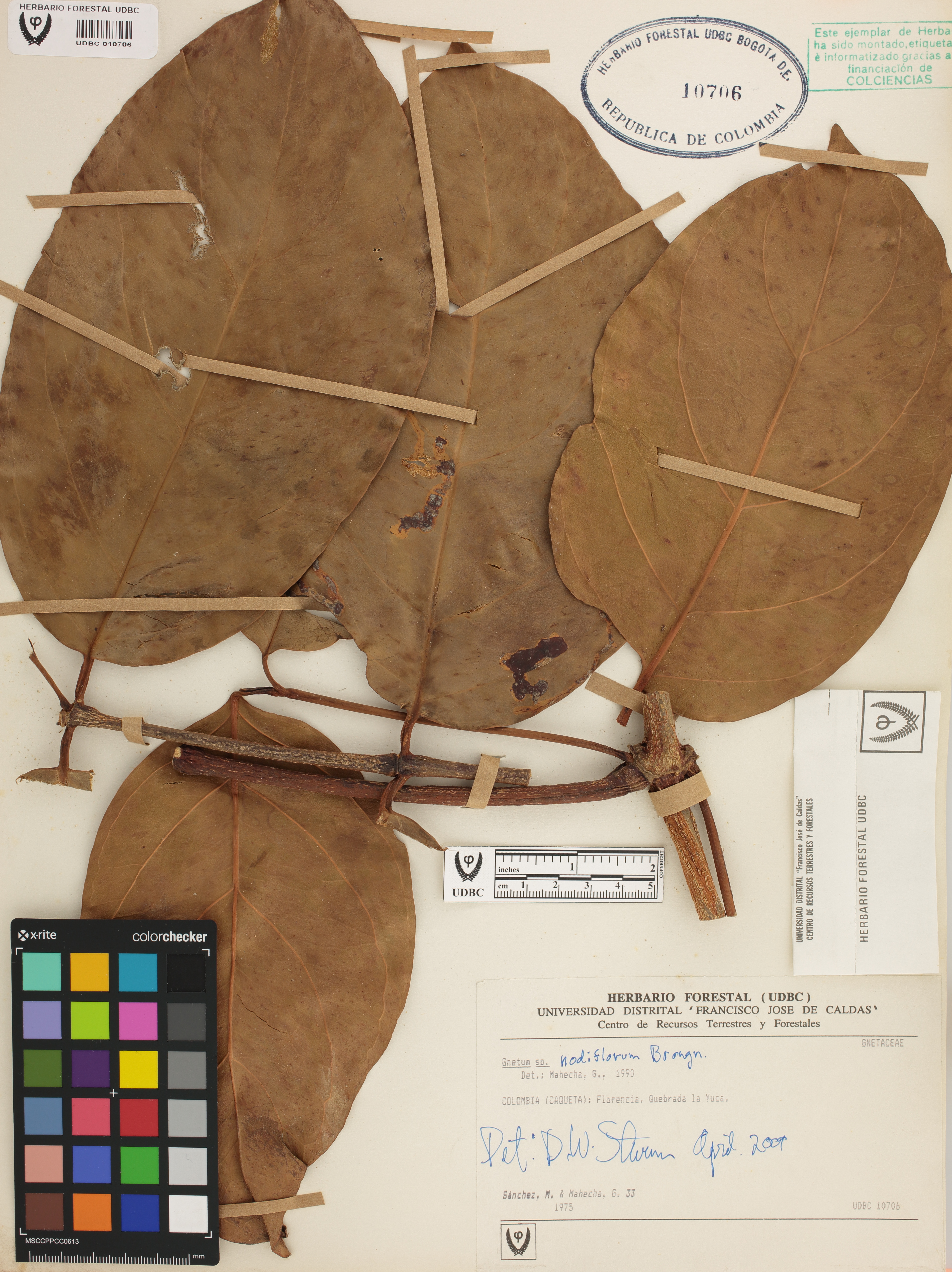Fotografía del ejemplar Sánchez, M. 33, determinado como Gnetum nodiflorum en el año 2009
