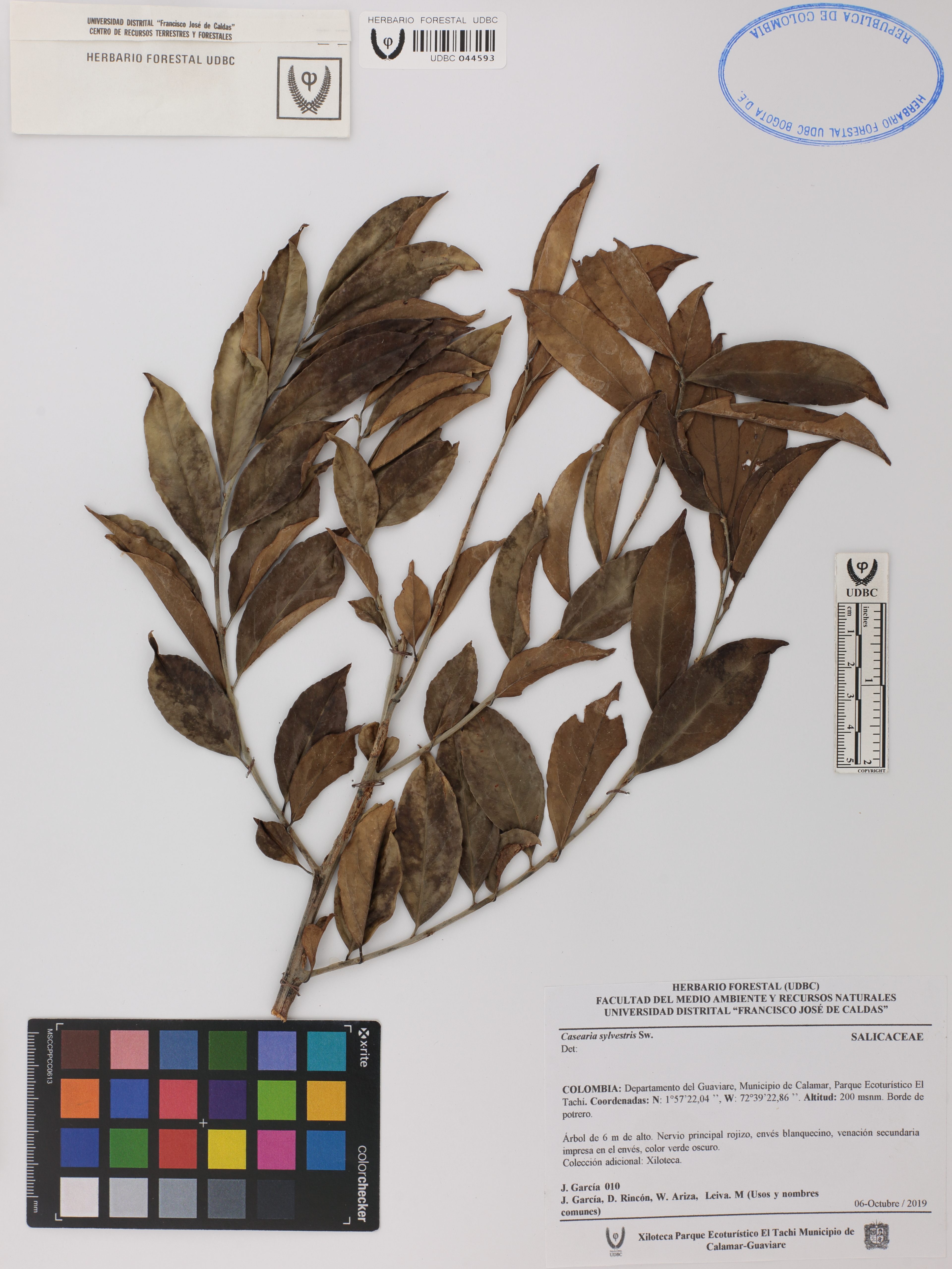 Fotografía del ejemplar García, J. 10, determinado como Casearia sylvestris en el año 2019