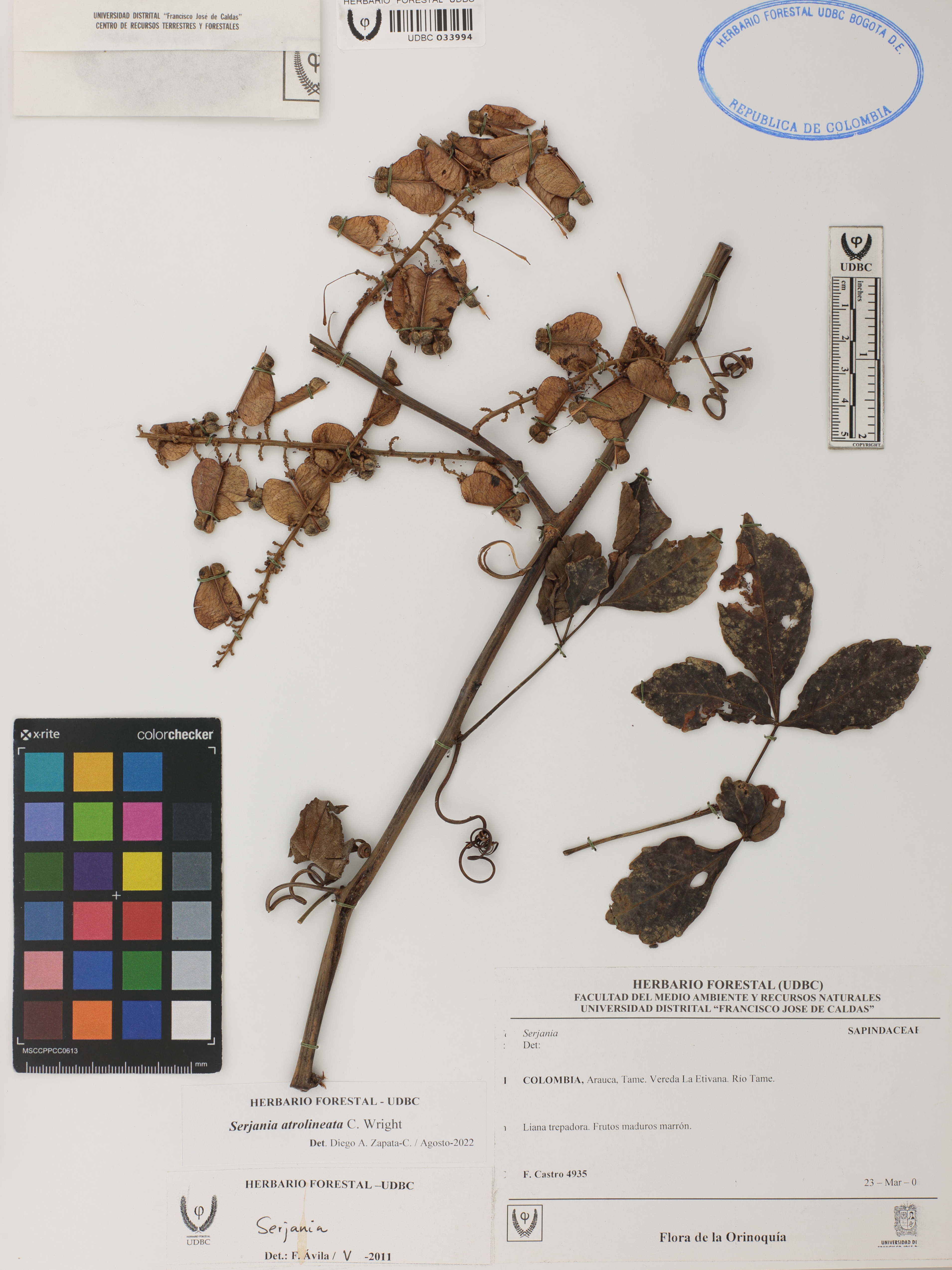 | dc.description | Fotografía del ejemplar Castro, F. 4935, determinado como Serjania atrolineata en el año 2022 | |