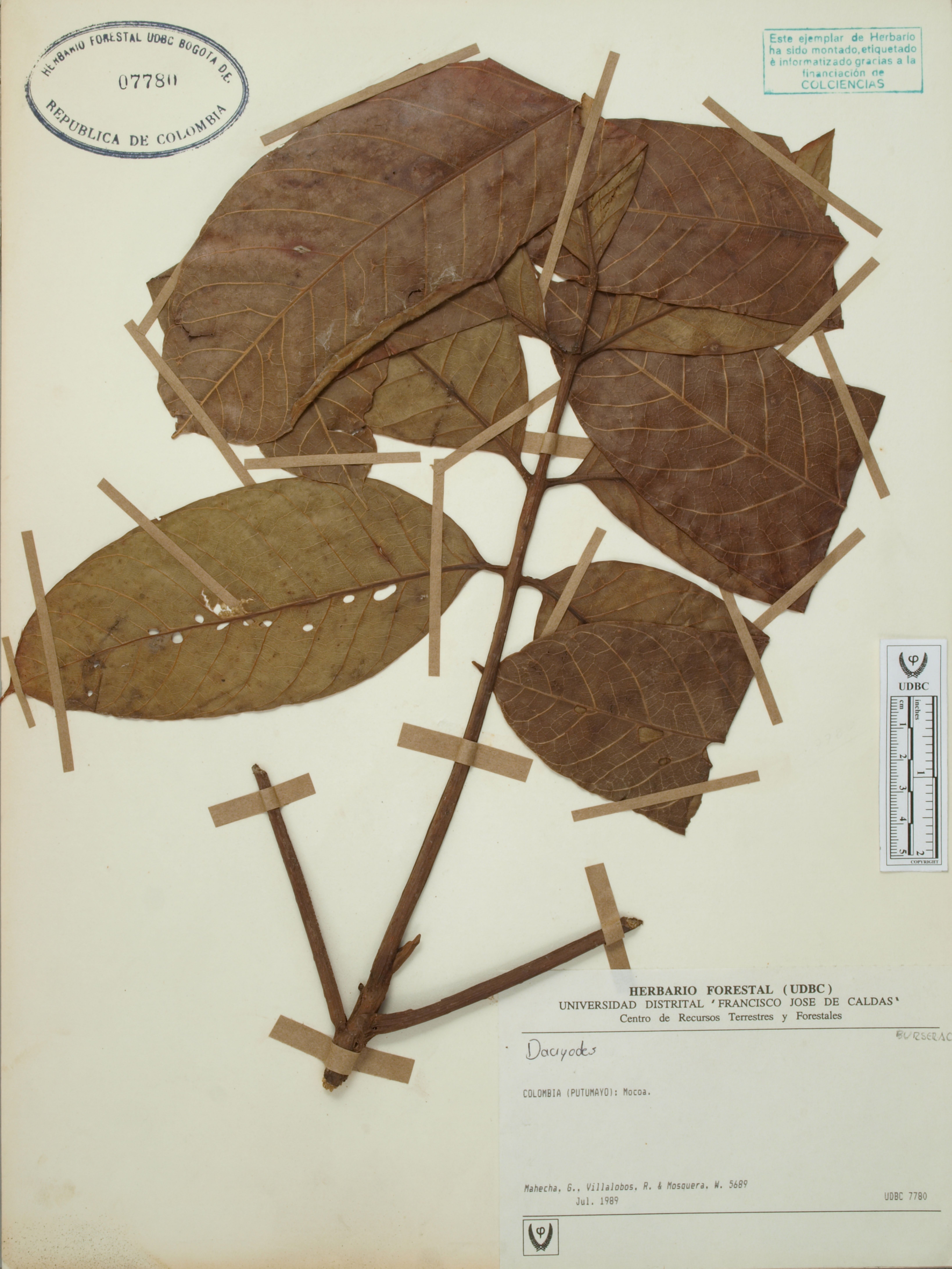 Fotografía del ejemplar Mahecha, G. 5689, determinado como Dacryodes sp. en el año 2005