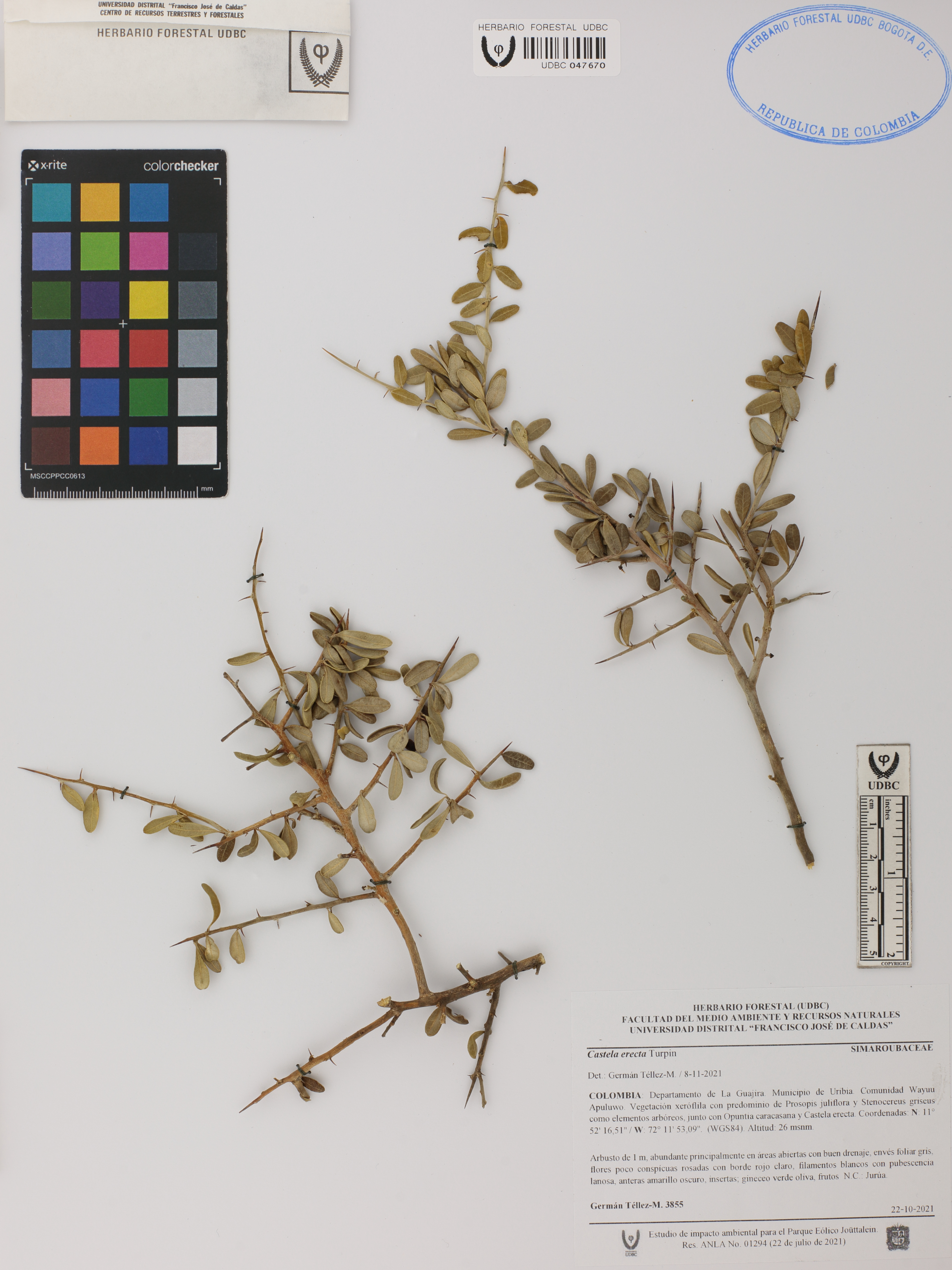 Fotografía del ejemplar Téllez-M., G. 3855, determinado como Castela erecta en el año 2021