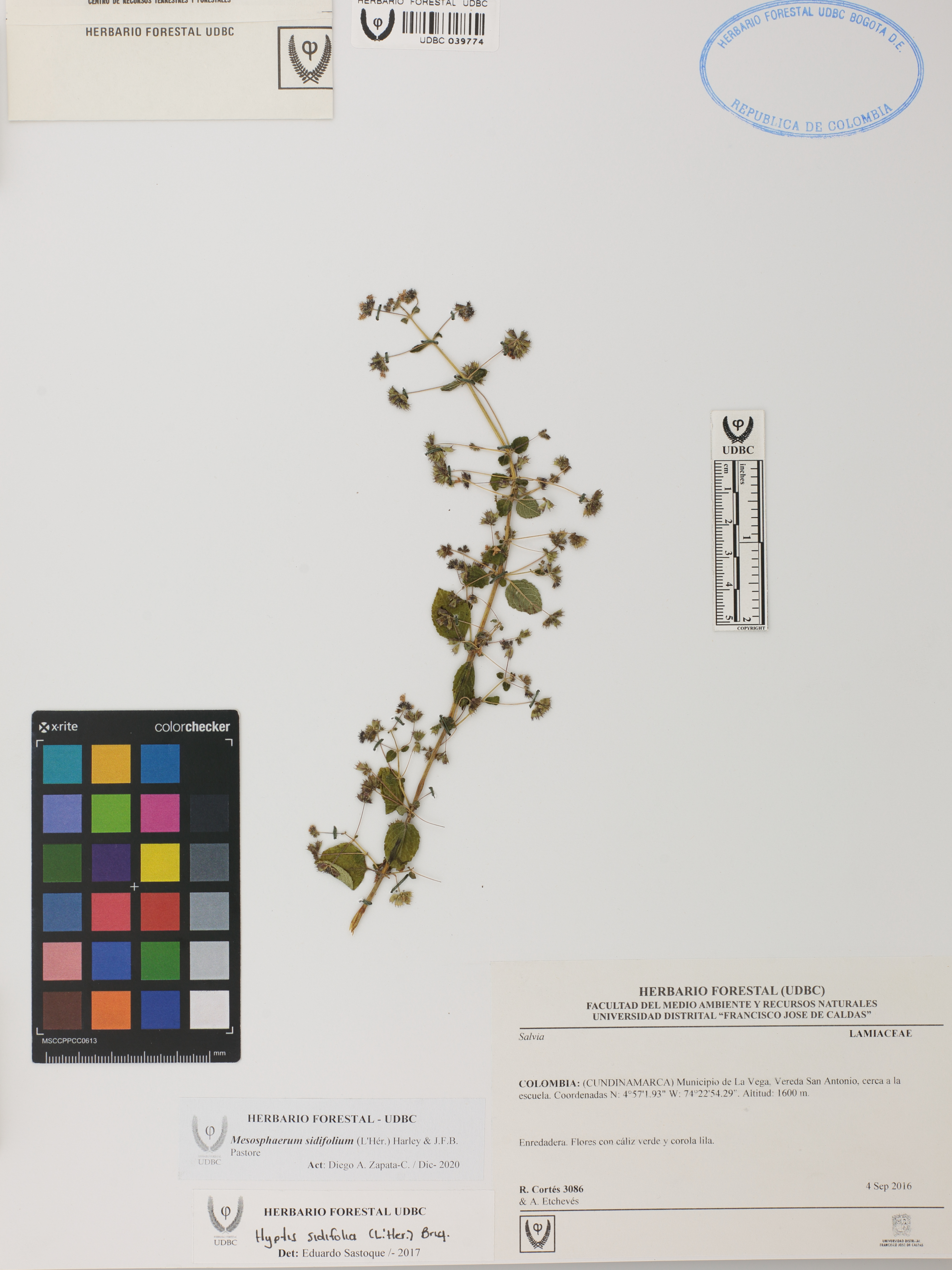 Fotografía del ejemplar Cortés, R. 3086, determinado como Mesosphaerum sidifolium en el año 2017