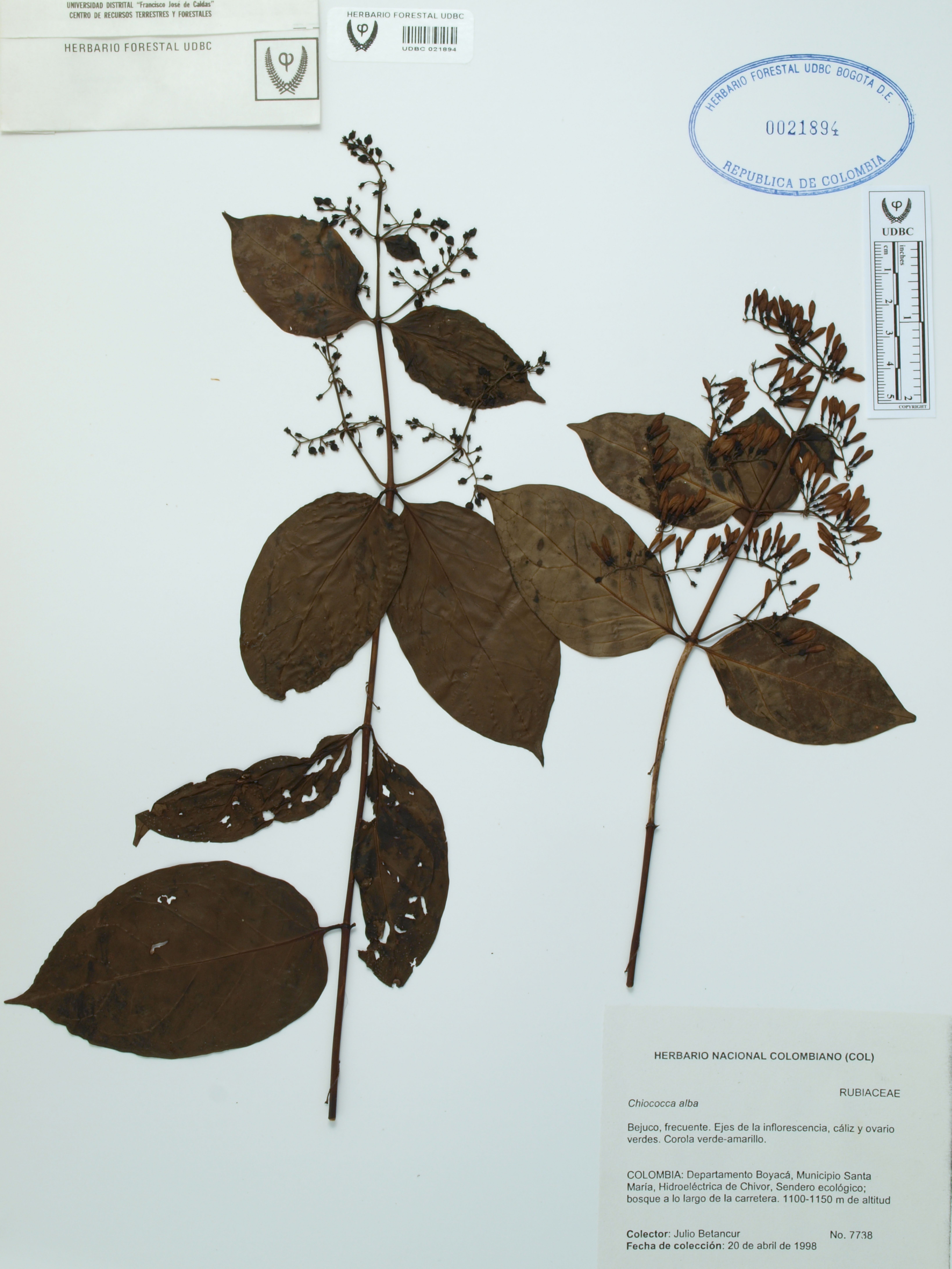 Fotografía del ejemplar Betancur, J. 7738, determinado como Chiococca alba