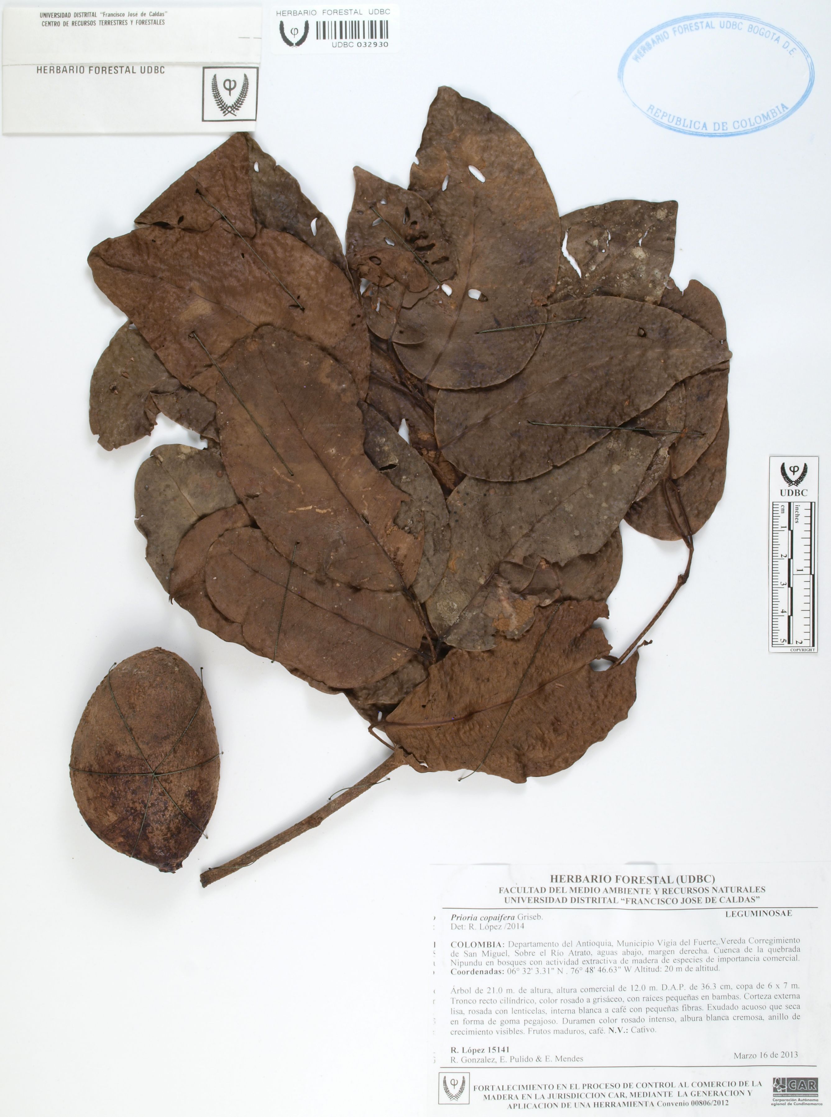 Fotografía del ejemplar López, R. 15414, determinado como Prioria copaifera