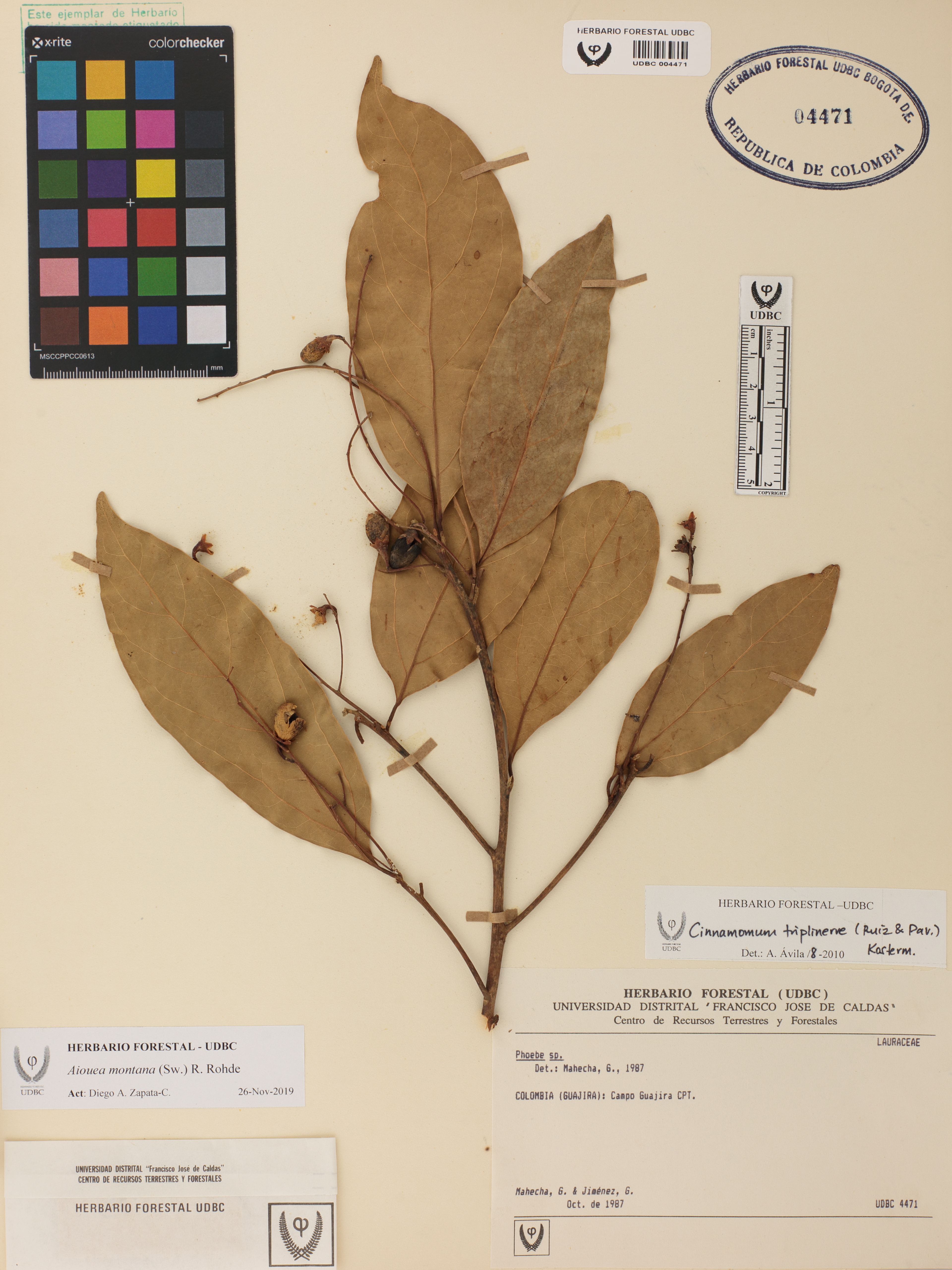 Fotografía del ejemplar Mahecha, G., determinado como Aiouea montana en el año 2019
