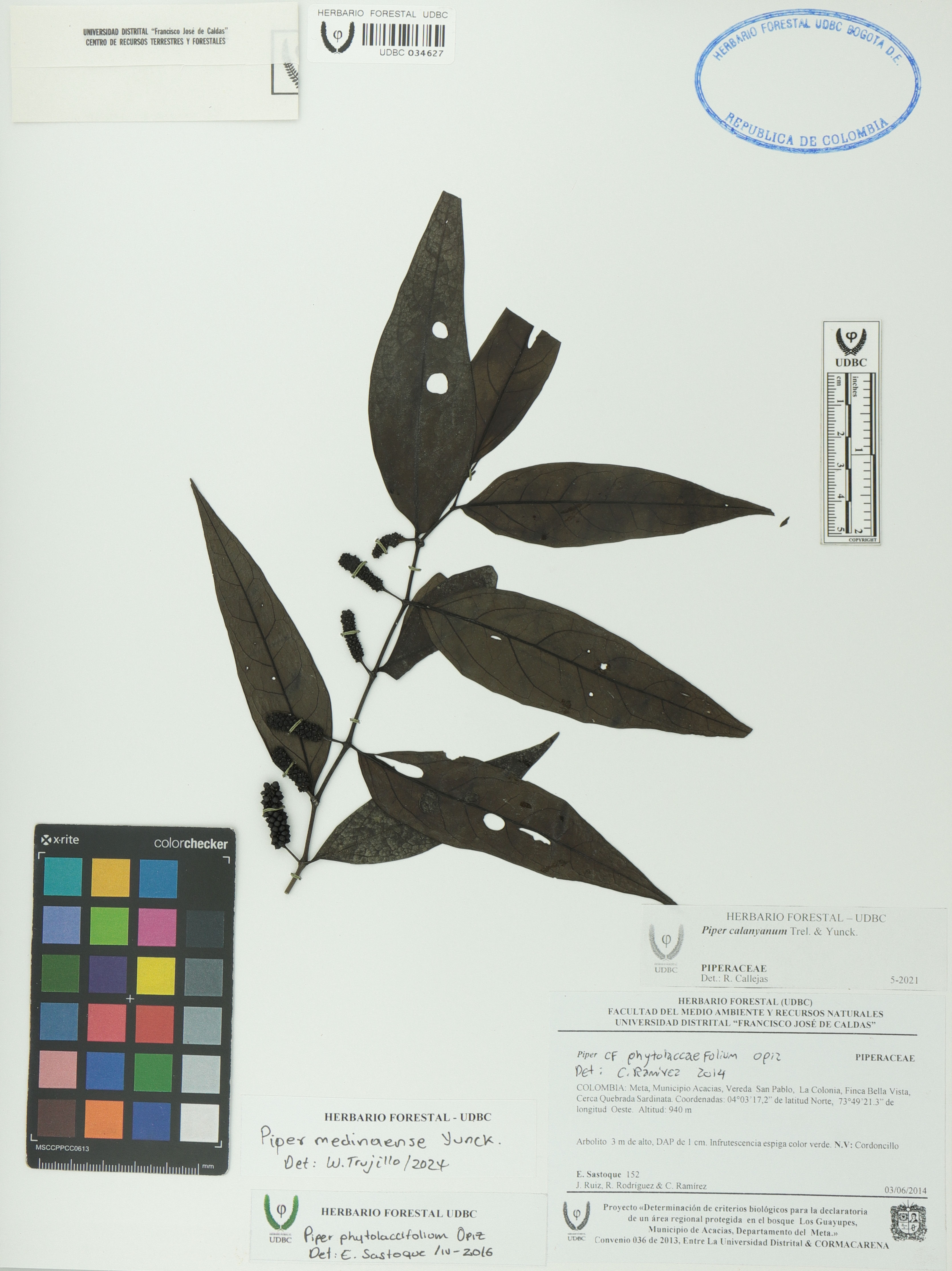 Fotografía del ejemplar Sastoque, E. 152, determinado como Piper medinaense en el año 2024