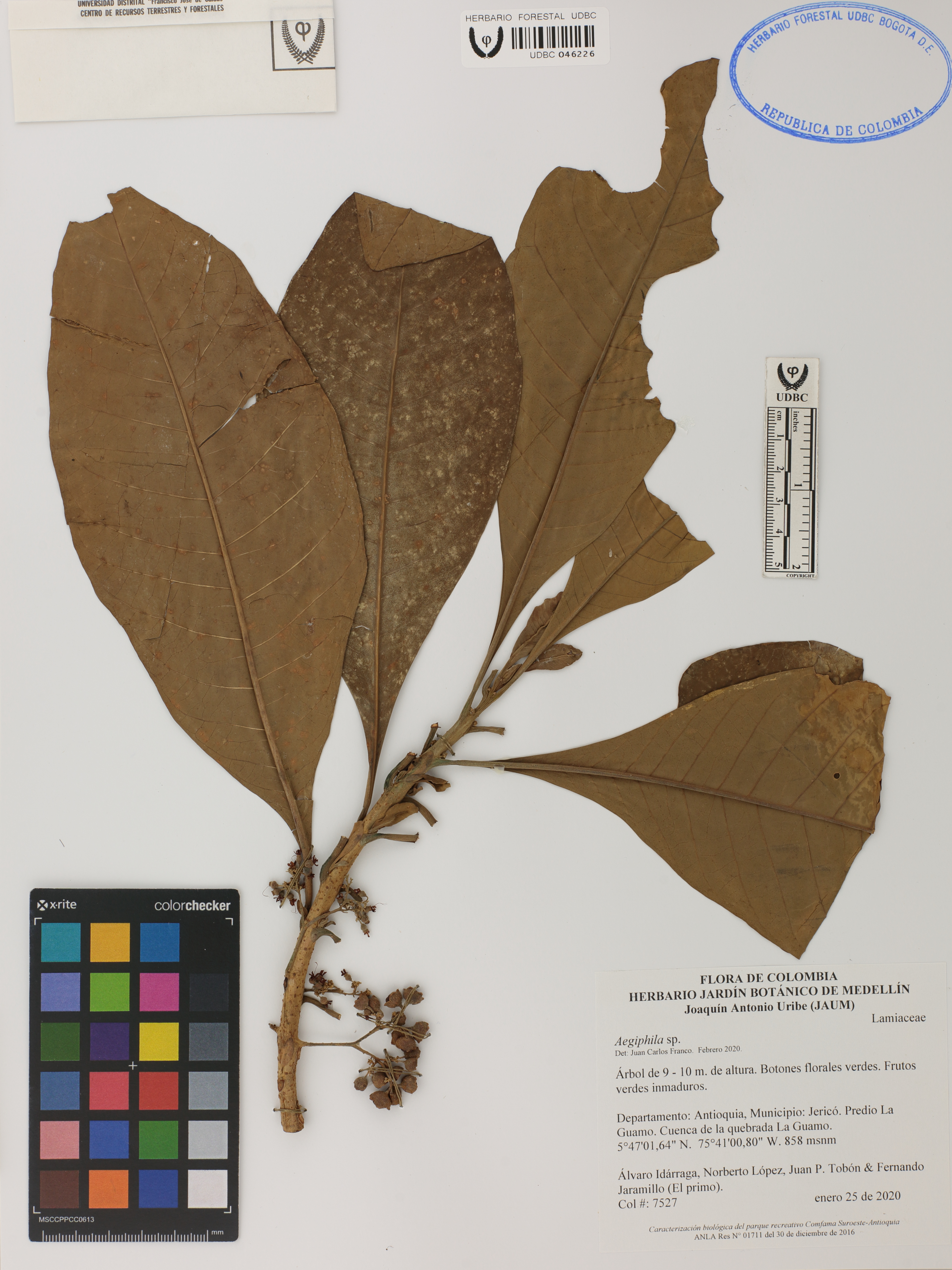 Fotografía del ejemplar Idárraga, Á. 7527, determinado como Aegiphila sp. en el año 2020