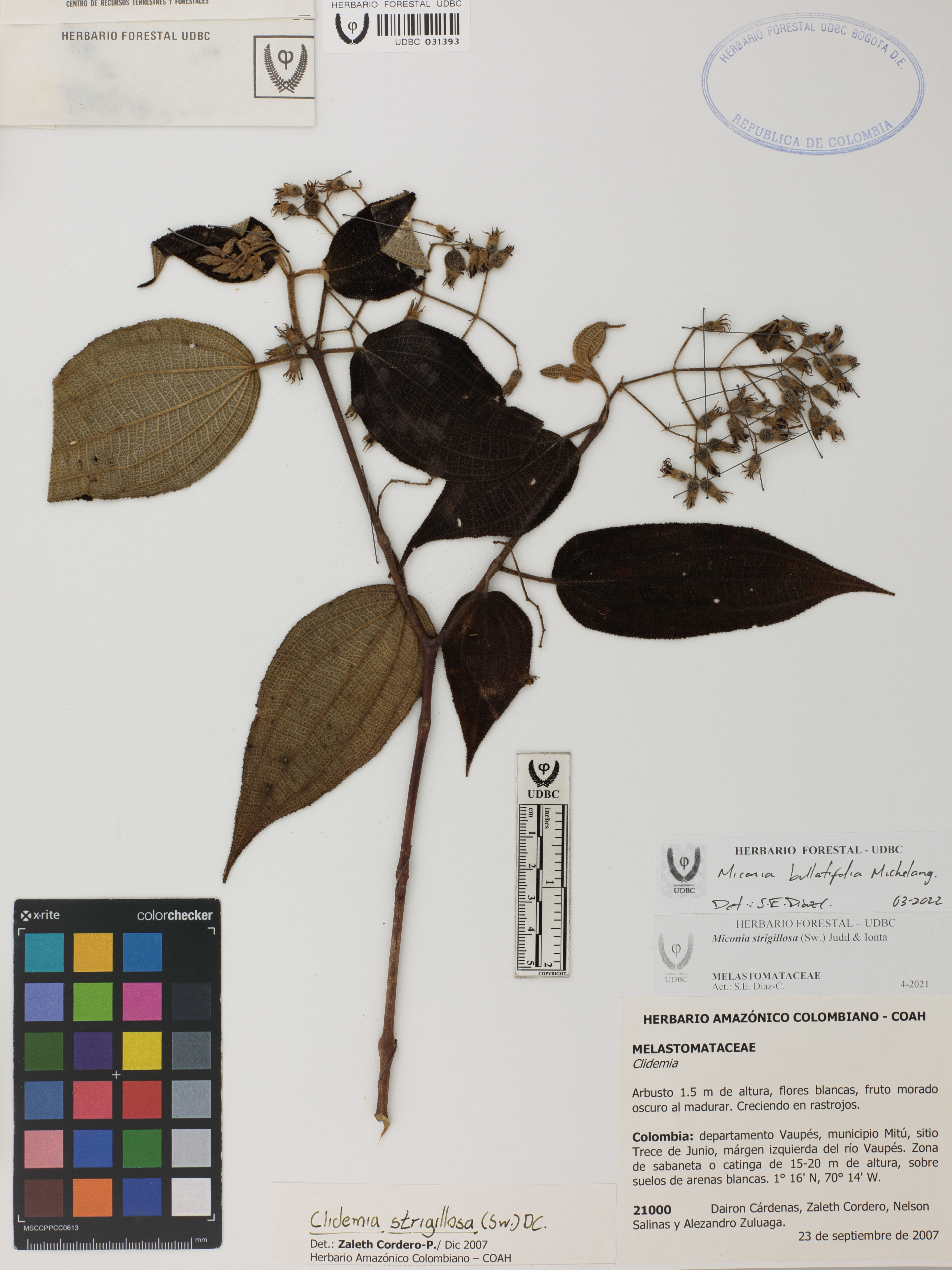 Fotografía del ejemplar Cárdenas, D. 21000, determinado como Miconia bullatifolia en el año 2022