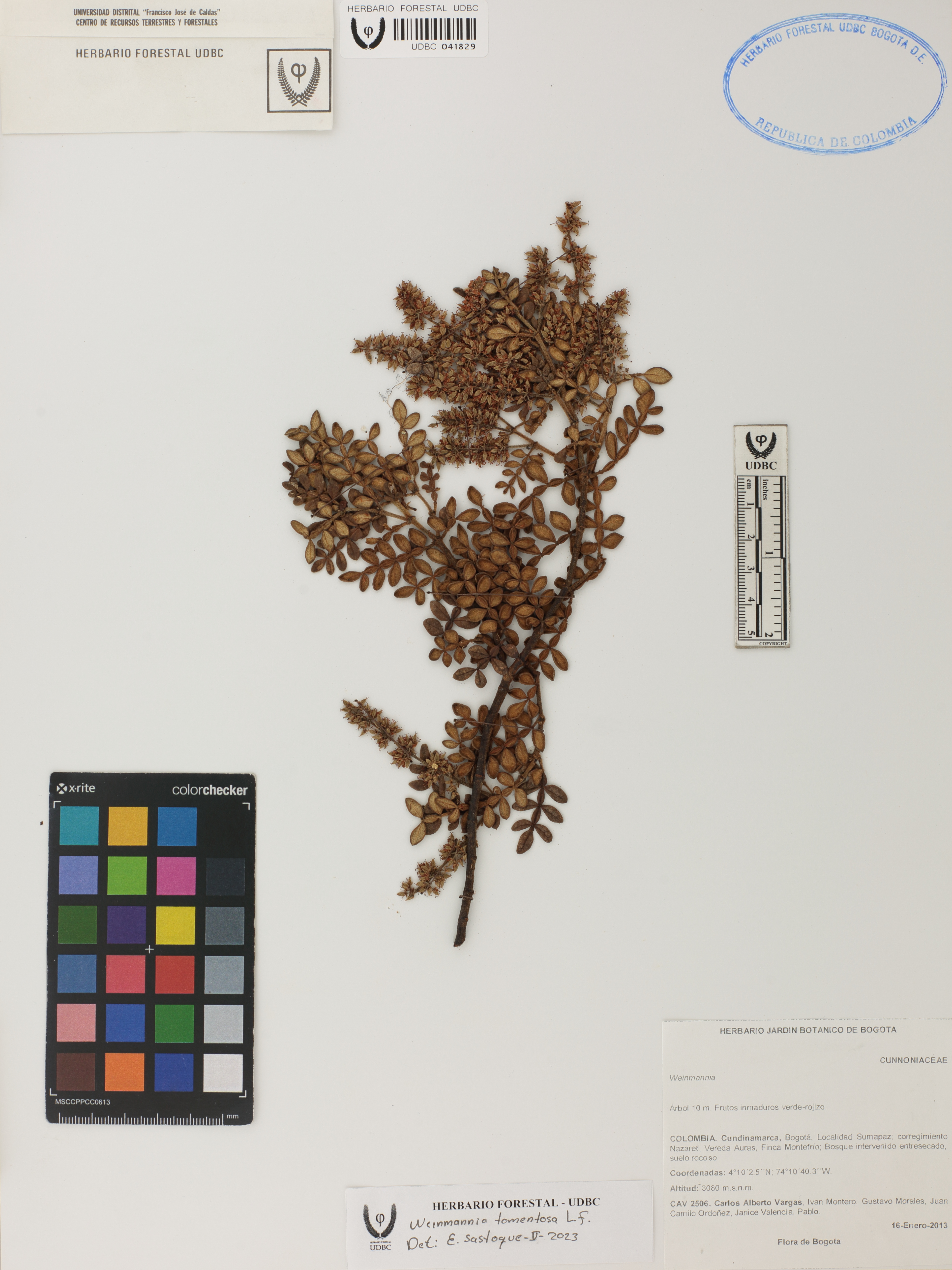 Fotografía del ejemplar Vargas, C. 2506, determinado como Weinmannia tomentosa en el año 2023