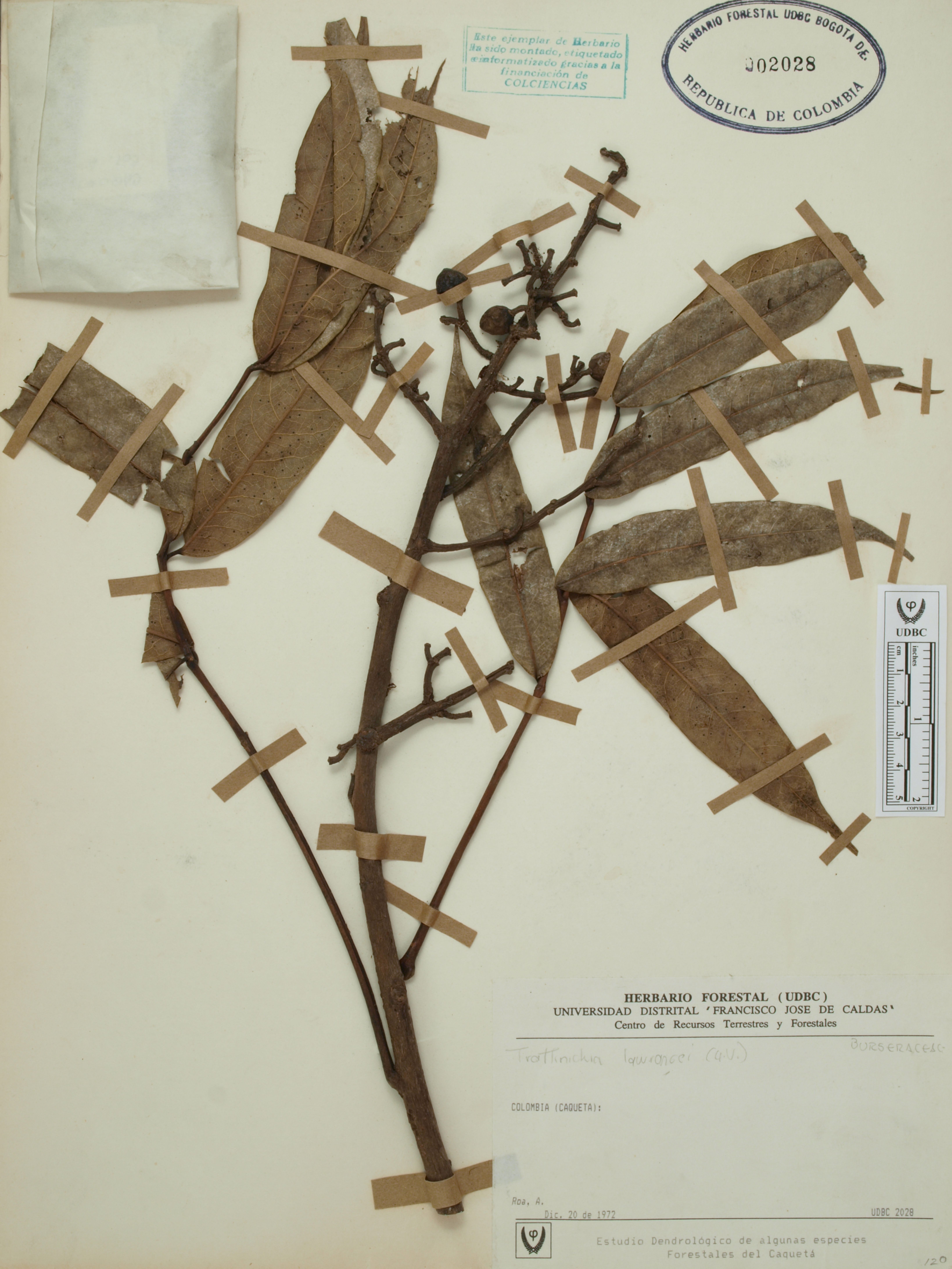 Fotografía del ejemplar Roa, A., determinado como Trattinnickia lawrancei