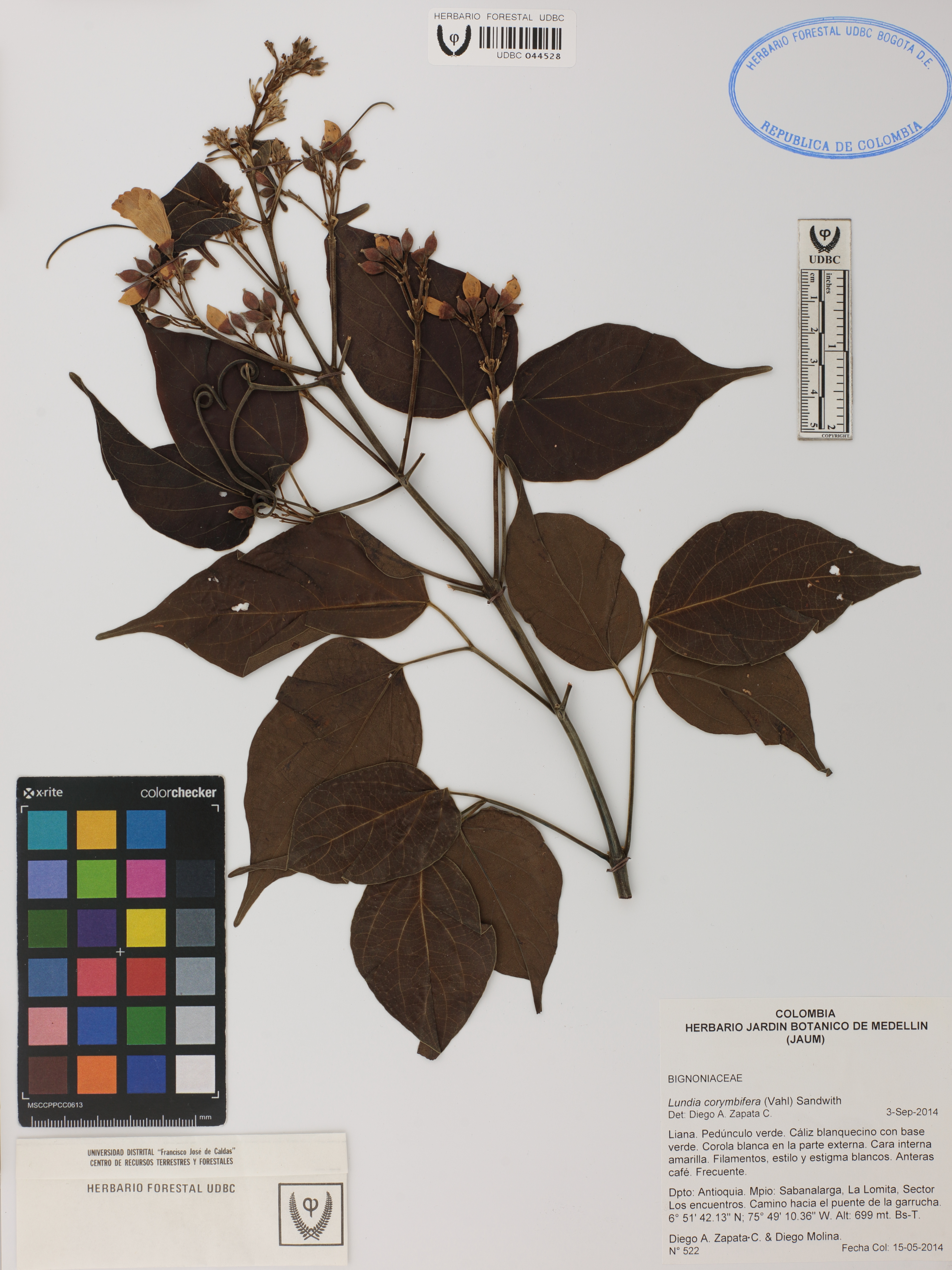 | dc.description | Fotografía del ejemplar Zapata-C., D. 522, determinado como Lundia corymbifera en el año 2014 | |