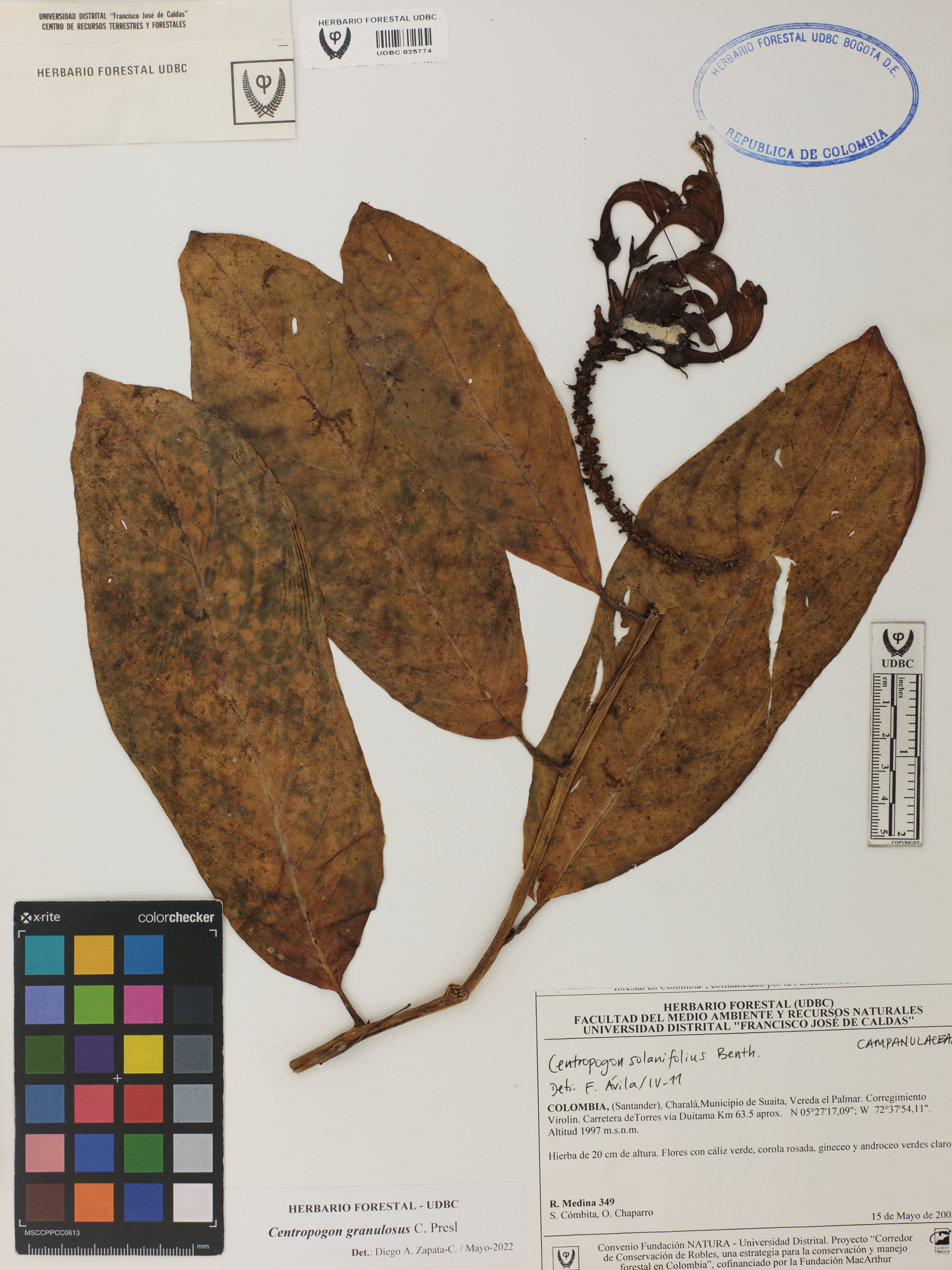 | dc.description | Fotografía del ejemplar Medina, R. 349, determinado como Centropogon granulosus en el año 2022 | |