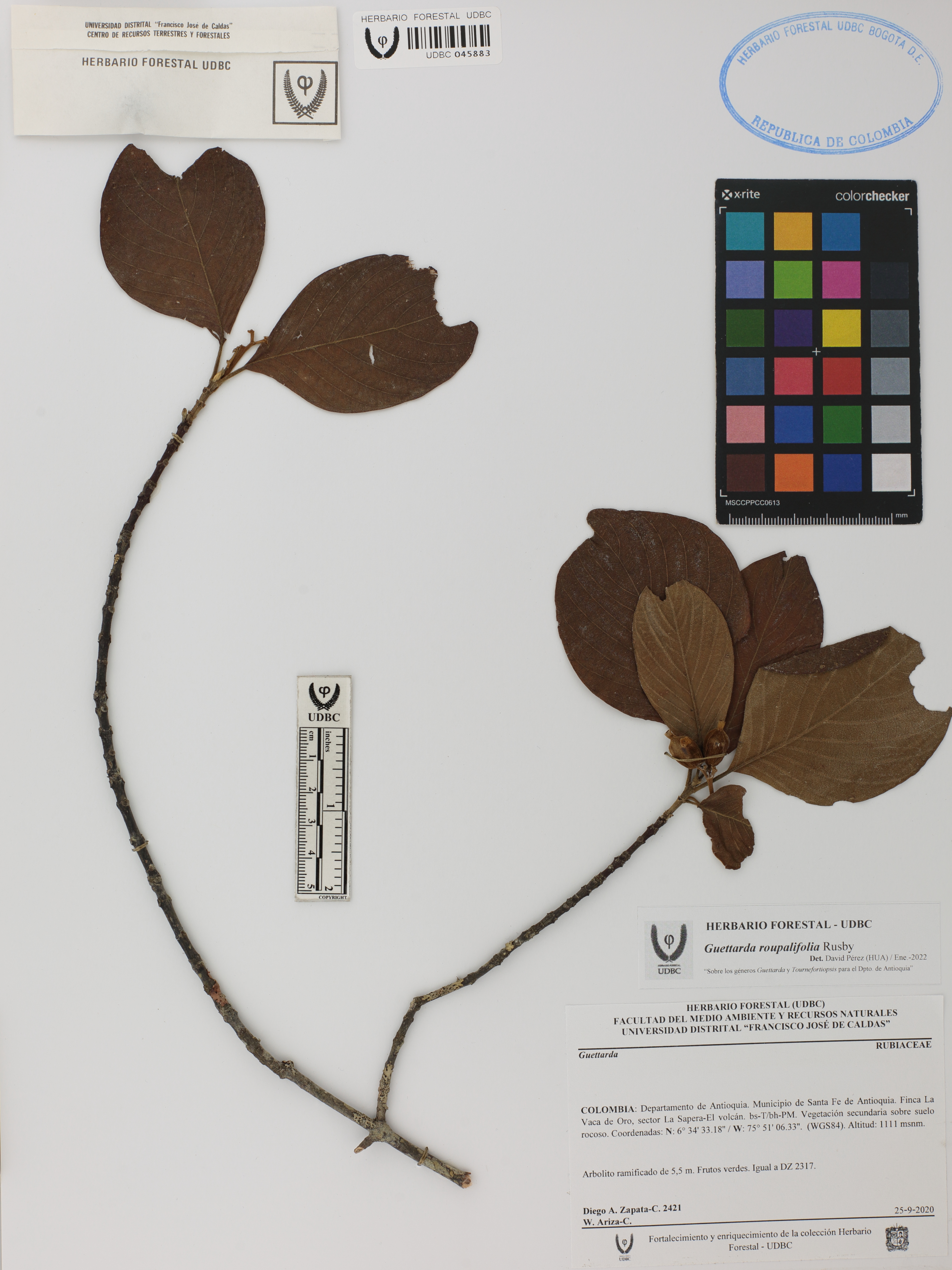 Fotografía del ejemplar Zapata-C., D. 2421, determinado como Guettarda roupalifolia en el año 2022