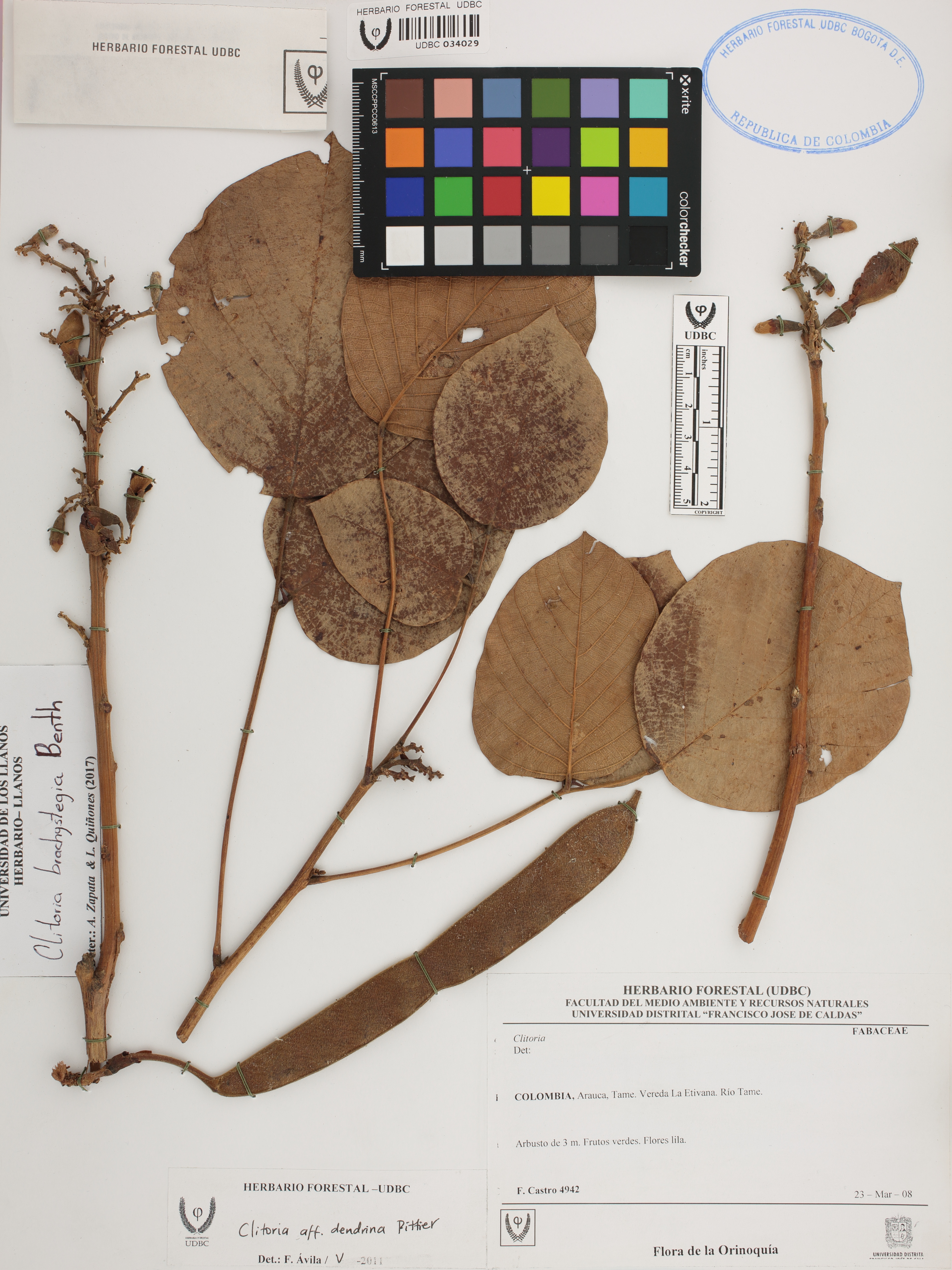 | dc.description | Fotografía del ejemplar Castro, F. 4942, determinado como Clitoria brachystegia en el año 2017 | |