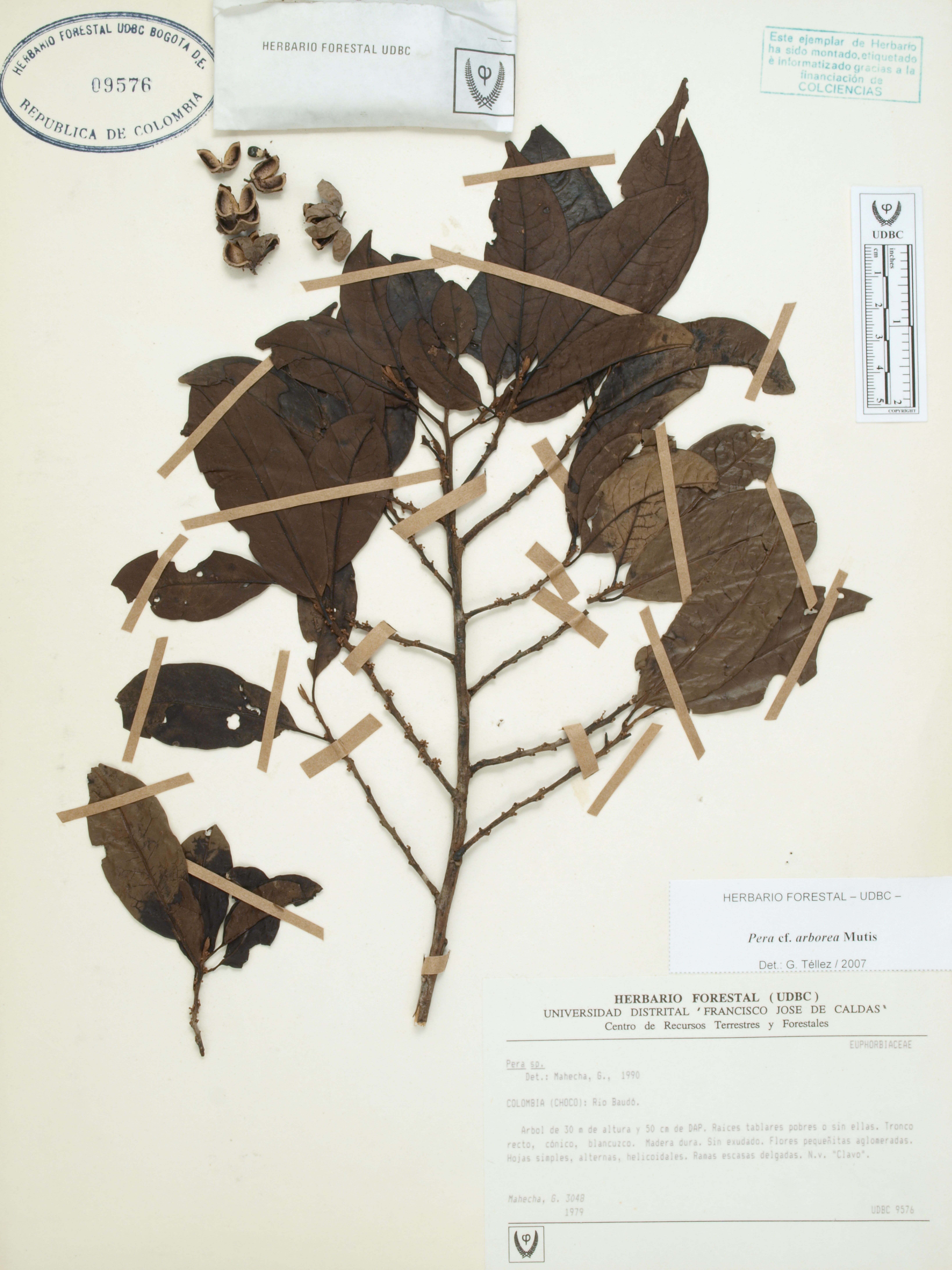 | dc.description | Fotografía del ejemplar Mahecha, G. 3048, determinado como Pera arborea en el año 2007 | |