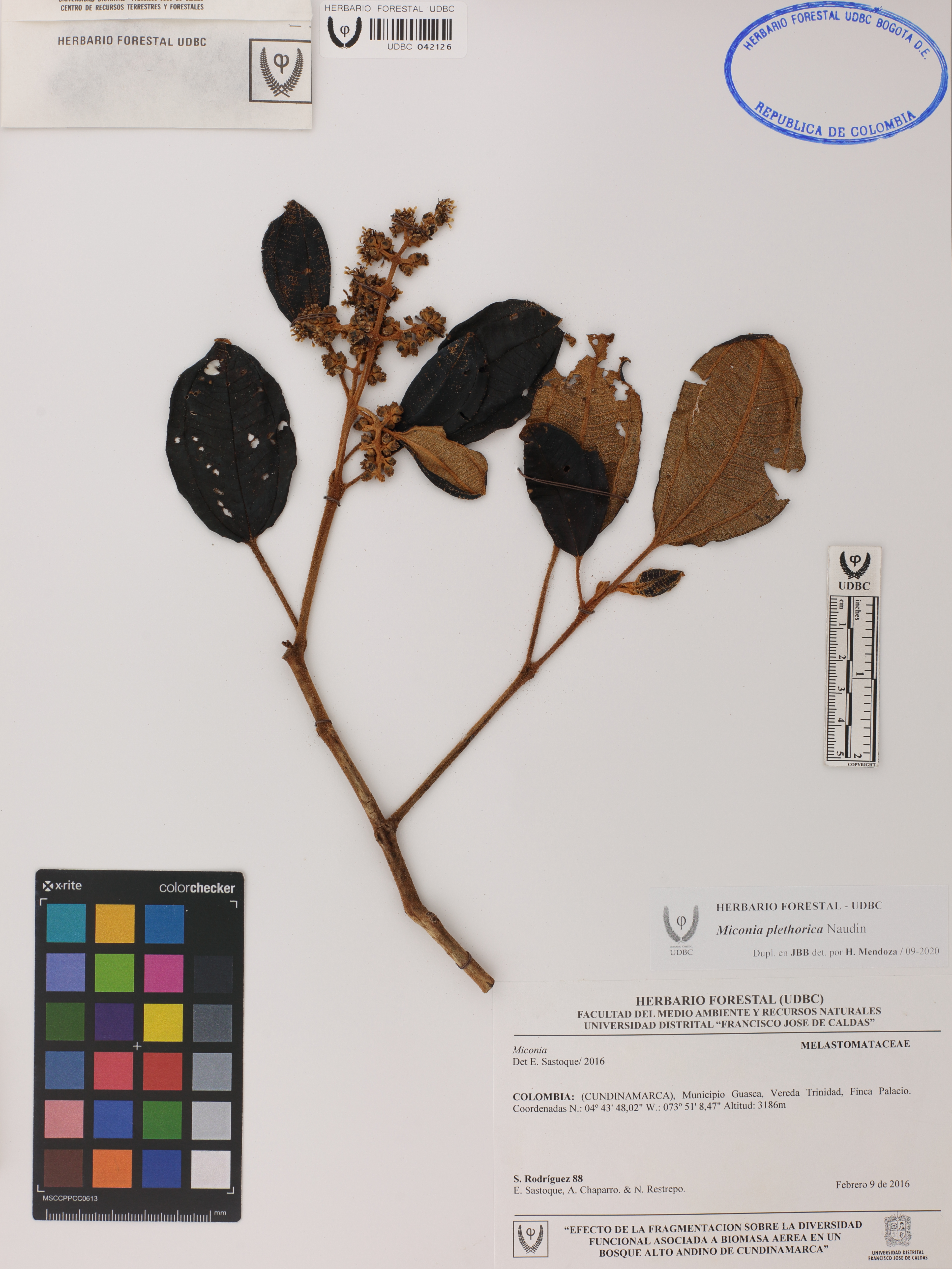 Fotografía del ejemplar Rodríguez, S. 88, determinado como Miconia plethorica en el año 2020